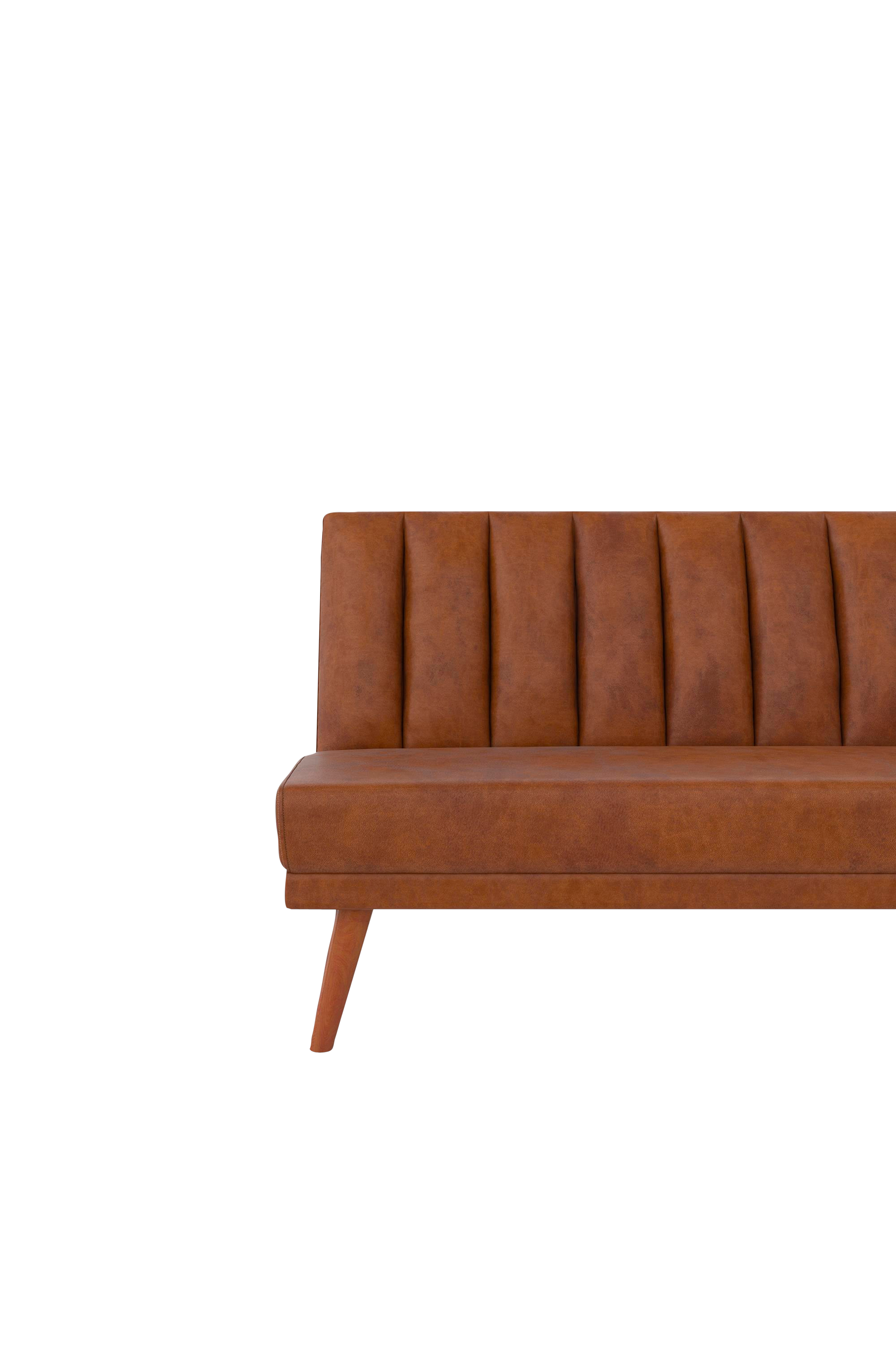 Hvordan kan vi ta den klassiske designen som du elsker og gjøre den enda bedre? Det er faktisk enkelt! Kolleksjonen Brittany fra Novogratz ønsker et nytt medlem velkommen til sin eliteklubb, og her kommer en etterlengtet introduksjon. Brittany sovesofa uten armlene fra Novogratz kombinerer et vattert ryggstø med ribbet tufting med smal profil som gjør at den passer i alle små stuer eller hjemmekontor. Det skåler vi for! Den kjennetegnes av slitestyrke og stabilitet, med robust stamme av tre og skrå ben av tre som gir ultimat støtte. Med bare et trykk på ryggstøet og minimal anstrengelse, forvandler du sofaen til en solstol eller sovesofa for overnattingsgjester. Fellbare støtteben bak gir sengen ekstra forsterkning, og kan skjule med en glidelås når de ikke brukes. Sitteputen har polyesterfiber- og skumfyll, noe som gjør at den holder formen. Sovesofaen har trekk av syntetisk materiale, og finnes i mange ulike moderne farger.