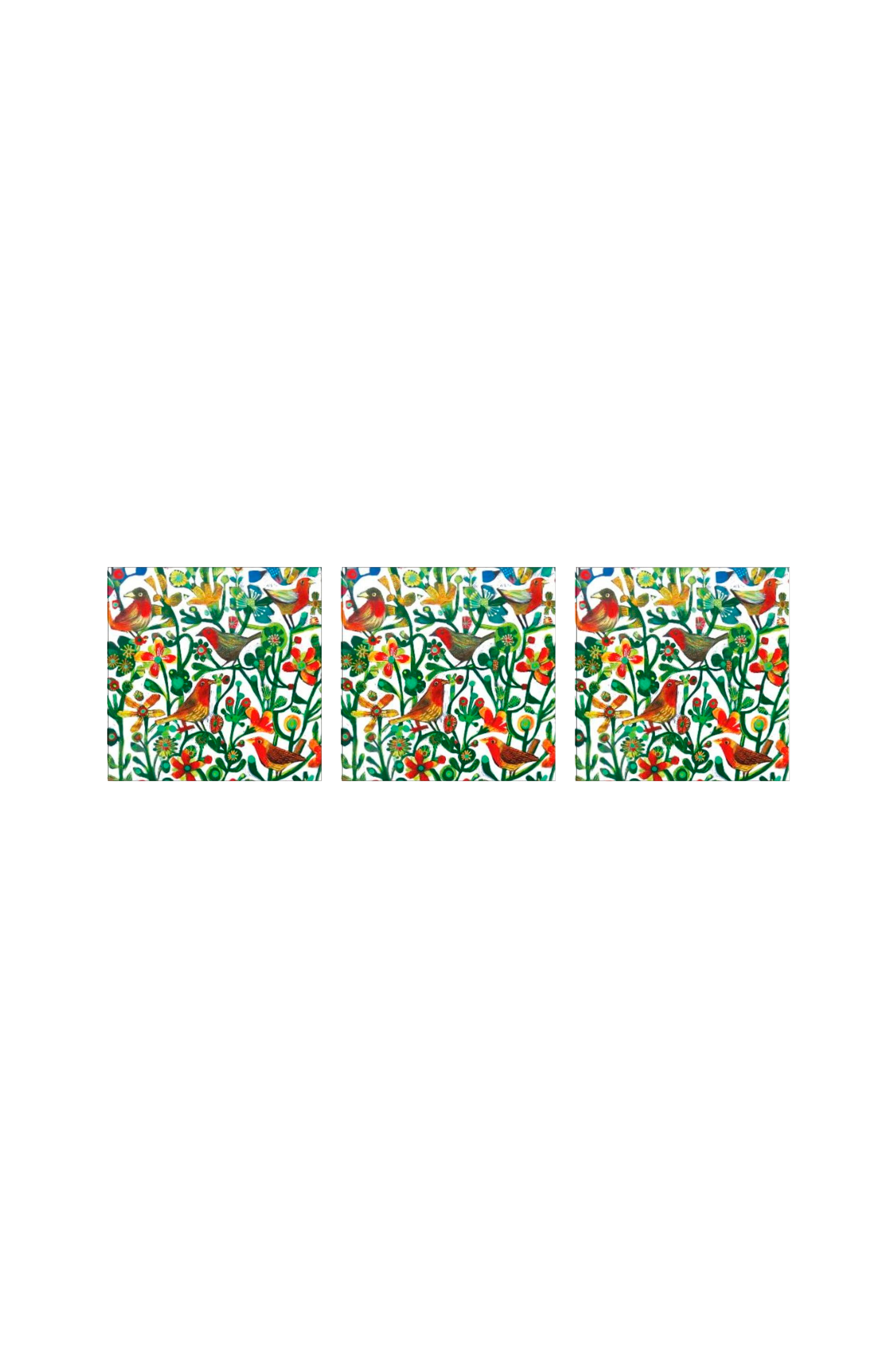 Servietter med vakkert motiv av fugler og blomster.