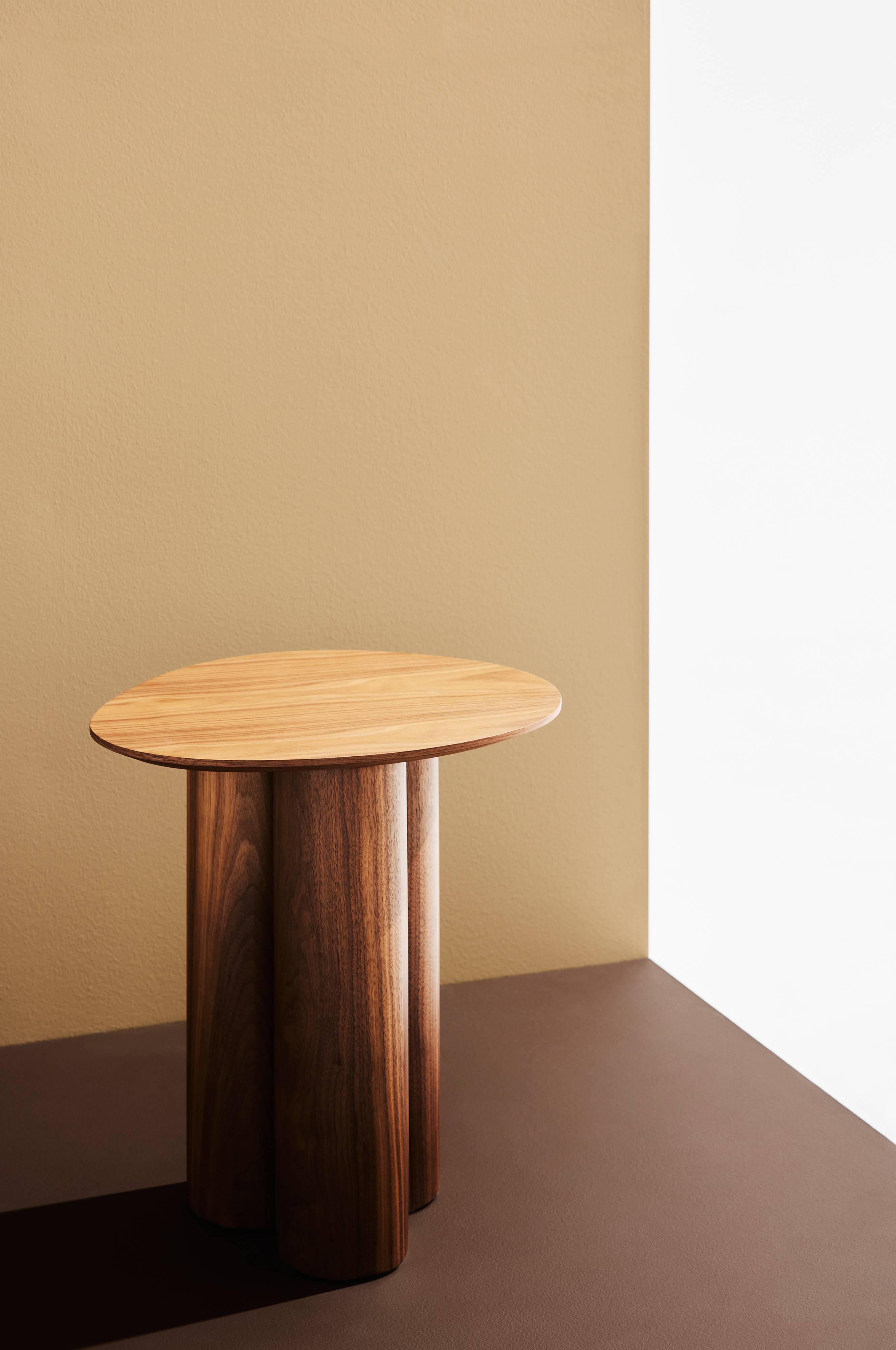 Remi er et stilrent sidebord med en asymmetrisk bordplate som har en mykt avrundet underkant.