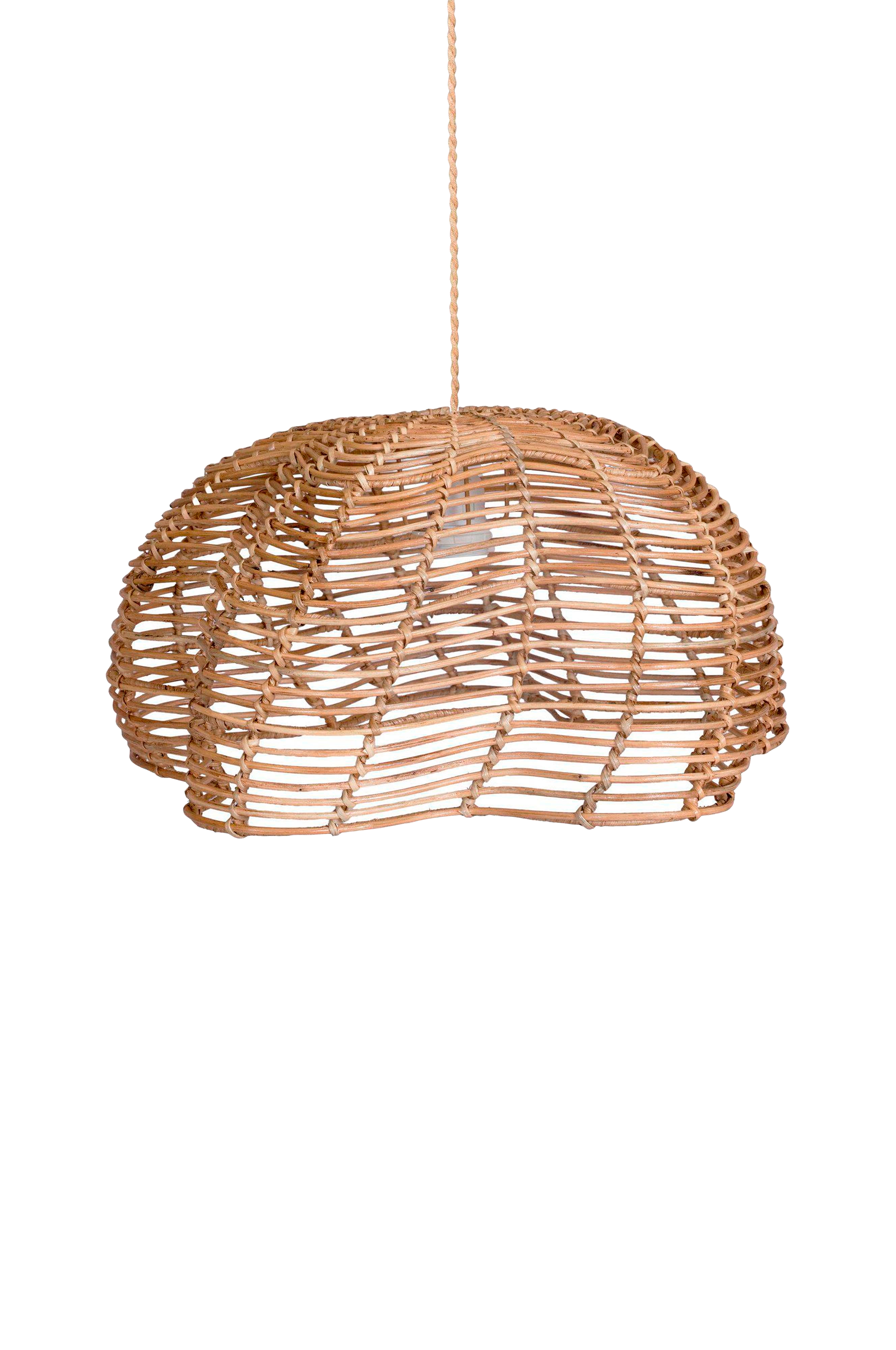 Mayla er en elegant taklampe laget av håndvevd naturrotting som gir hjemmet ditt en varm, organisk og innbydende atmosfære. Den nøye utformede lampeskjermen er laget av sammenflettede rottingstrenger, noe som gir hver lampe en unik tekstur og karakter. Den forsiktig vridde formen tilfører et moderne, men bohemsk preg til ethvert rom - perfekt for deg som ønsker et personlig og uttrykksfullt interiør. Siden lampen er laget av naturmaterialer, kan både form og farge variere noe, og overflaten kan utvikle en vakker patina over tid - en del av lampens autentiske sjarm. Mayla måler 43 cm i diameter og 27 cm i høyden, og leveres med et takfeste med en vridd kabel pakket inn i linlignende stoff, en hvit takkopp og en e27-sokkel. Lyskilde maks. 40w (e27). Takplugg selges separat.