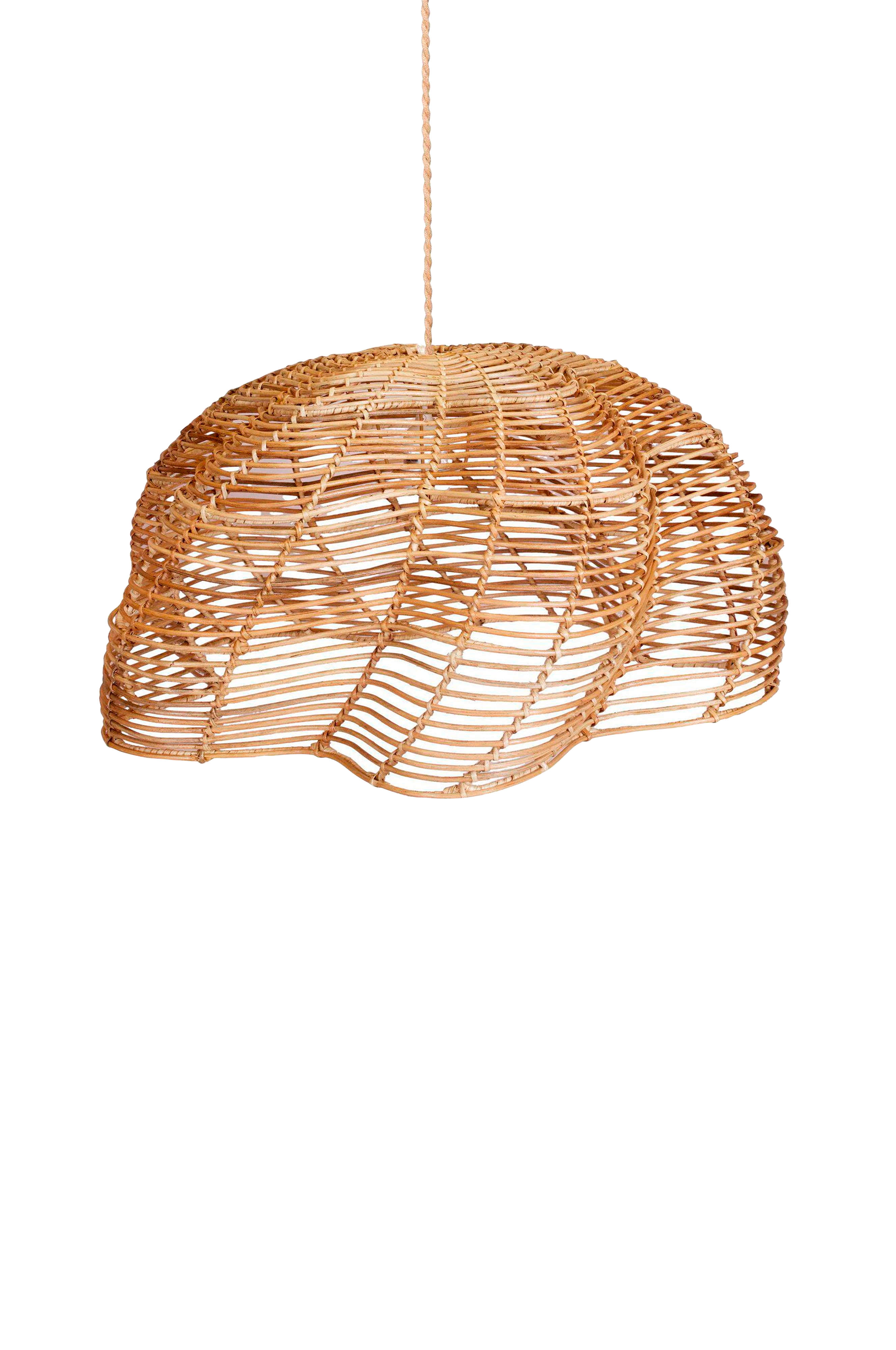 Mayla er en elegant taklampe laget av håndvevd naturrotting som gir hjemmet ditt en varm, organisk og innbydende atmosfære. Den nøye utformede lampeskjermen er laget av sammenflettede rottingstrenger, noe som gir hver lampe en unik tekstur og karakter. Den forsiktig vridde formen tilfører et moderne, men bohemsk preg til ethvert rom - perfekt for deg som ønsker et personlig og uttrykksfullt interiør. Siden lampen er laget av naturmaterialer, kan både form og farge variere noe, og overflaten kan utvikle en vakker patina over tid - en del av lampens autentiske sjarm. Mayla måler 53 cm i diameter og 32 cm i høyden, og leveres med et takfeste med en vridd kabel pakket inn i linlignende stoff, en hvit takkopp og en e27-sokkel. Lyskilde maks. 40w (e27). Takplugg selges separat.