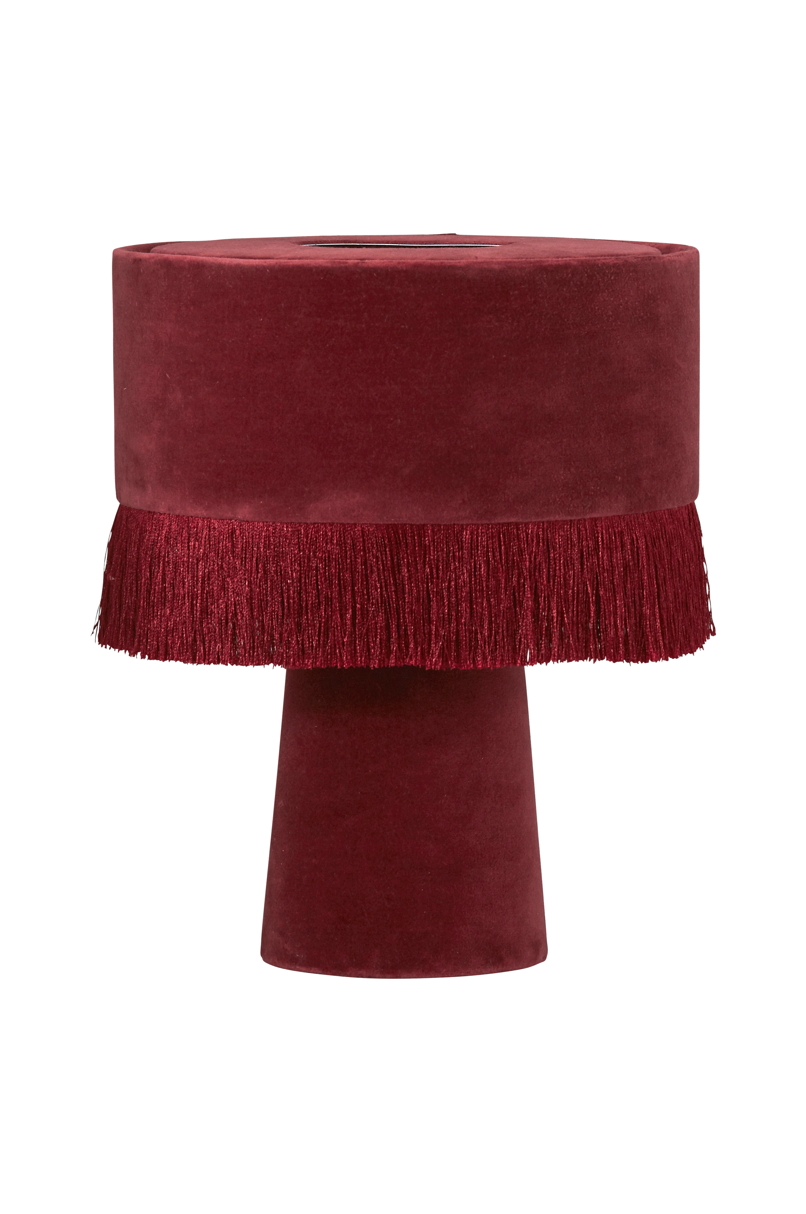 Den herlige, fine bordlampen Alexis har et enkelt design med et mykt inntrykk. Både lampeskjerm og lampefot er i fløyel, og skjermen har også en nydelig frynsekant. Høyde 31 cm, Ø 25 cm. Sokkel E14. Maks. 25 W. Lampen har en 2 meter lang, hvit ledning.