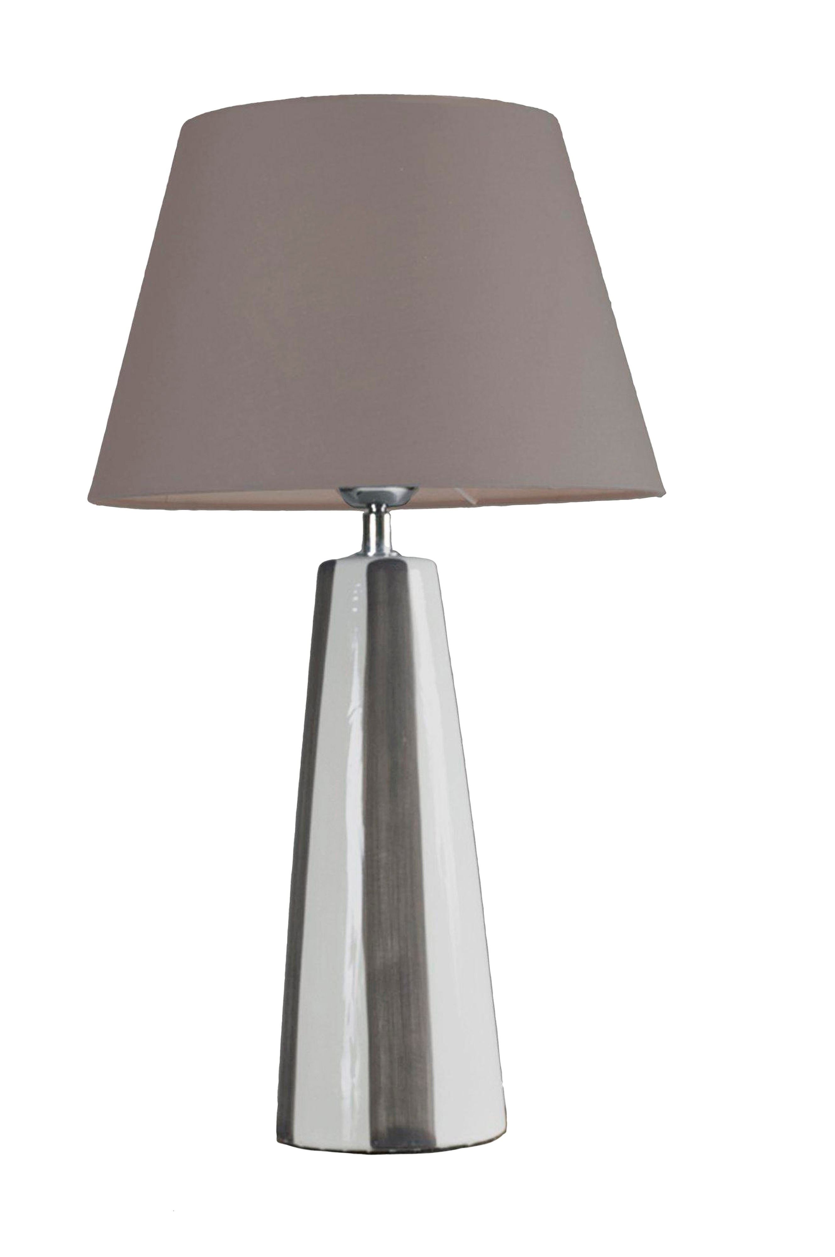 Leya bordlampe er en komplett lampe med matchende skjerm. Den stripete keramikkfoten har et håndmalt uttrykk. Lampens totale høyde er 54 cm, og den måler 30 cm i dybden og bredden. Plastkabelen er 170 cm lang og har en bryter 30 cm fra lampefoten. E27-sokkel. Maks. 40 watt. Ip20. Lyskilde selges separat.