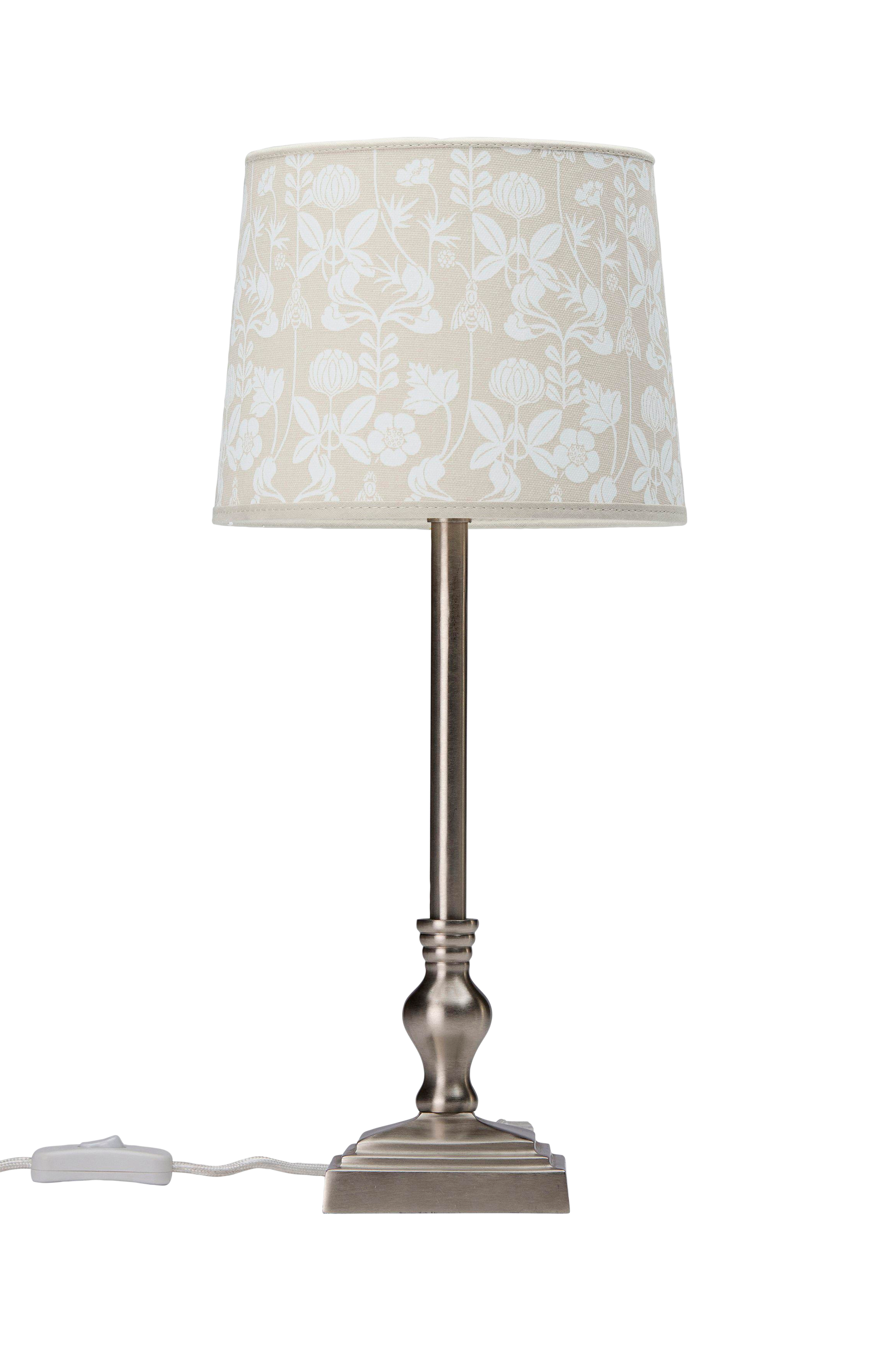 Med sin enkle form og fine detaljer er Lisa bordlampe det perfekte valget for mange hjem. Skjermen har lys innside og rullede kanter for å forsterke det vakre trykket. Formen er lett skrå og har E27-feste. Lampefoten har tekstilkledd ledning med bryter, 150 cm.