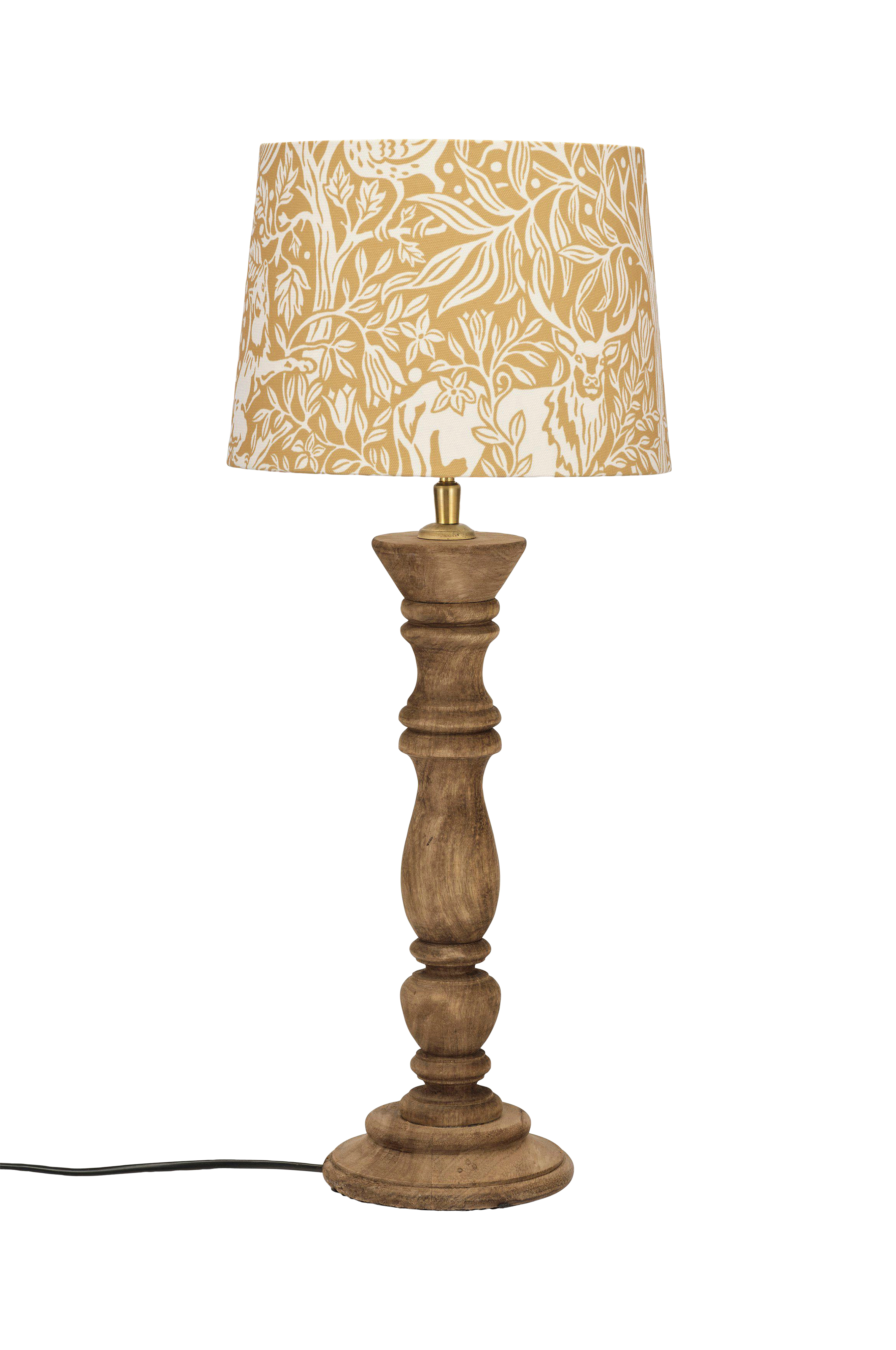 Lampefot av tre, dreid i et vakkert design med myke former og med en lampeskjerm i en rolig og beroligende farge fra boråstapeter. Det herlige mønsteret passer i mange typer rom. Lampeskjermens mål: 25 cm i diameter nederst, 22 cm øverst og 18 cm i høyden. E27 fast kardang. Laget av 100 % resirkulert polyester, trykt i Borås. Lampefoten har en høyde på 46 cm og en 2 m lang ledning.