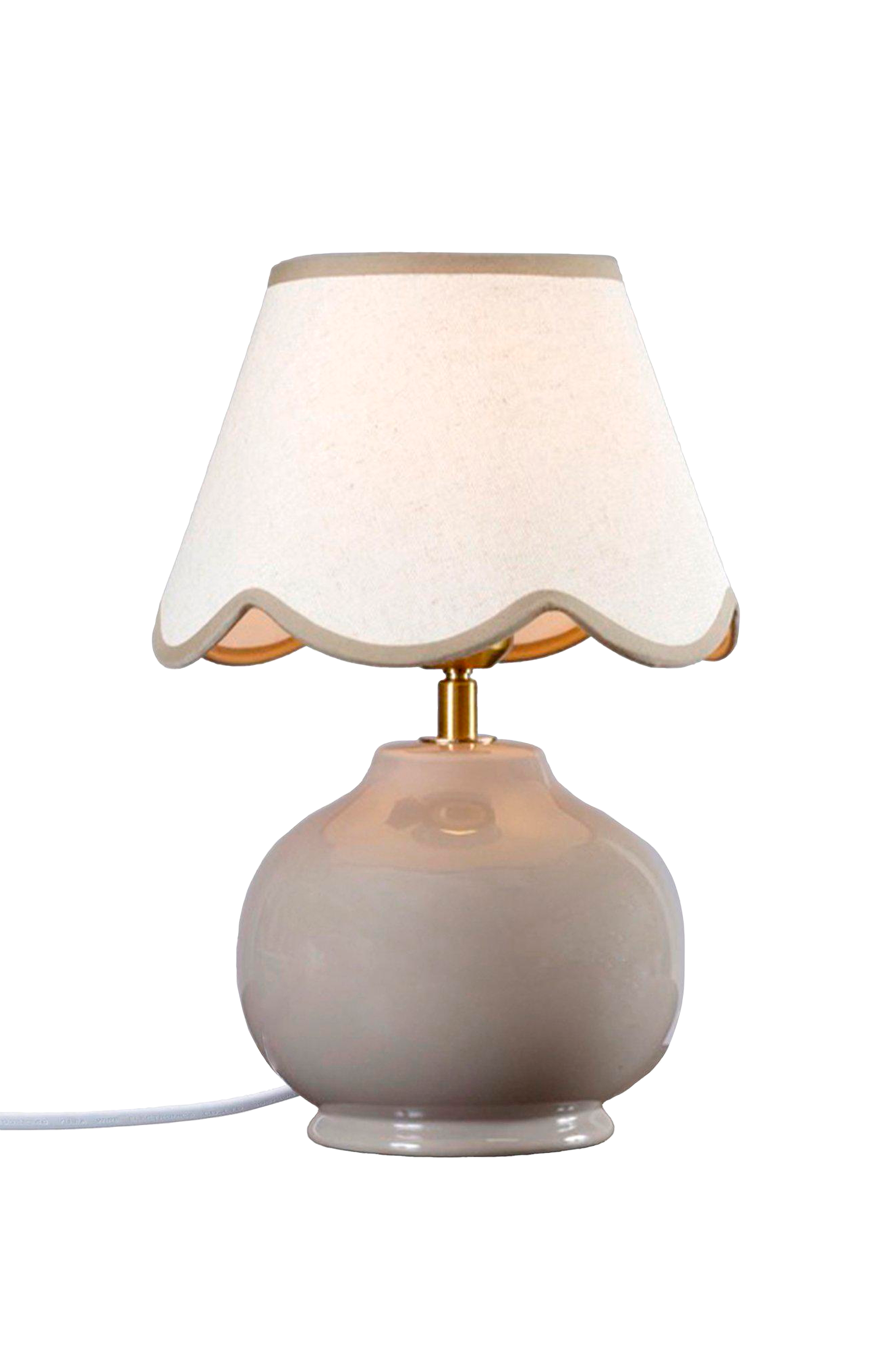 Nell bordlampen er en komplett lampefot med matchende skjerm. Den har en kuleformet keramikkfot med en linlignende skjerm som har en skålformet kant med matchende dekor. Lampens totale høyde er 35 cm, og den måler 23 cm i dybden og bredden. Plastkabelen er 170 cm lang og har en bryter 30 cm fra lampefoten. E27-sokkel. Maks. 40 watt. Ip20. Lyskilde er ikke inkludert.