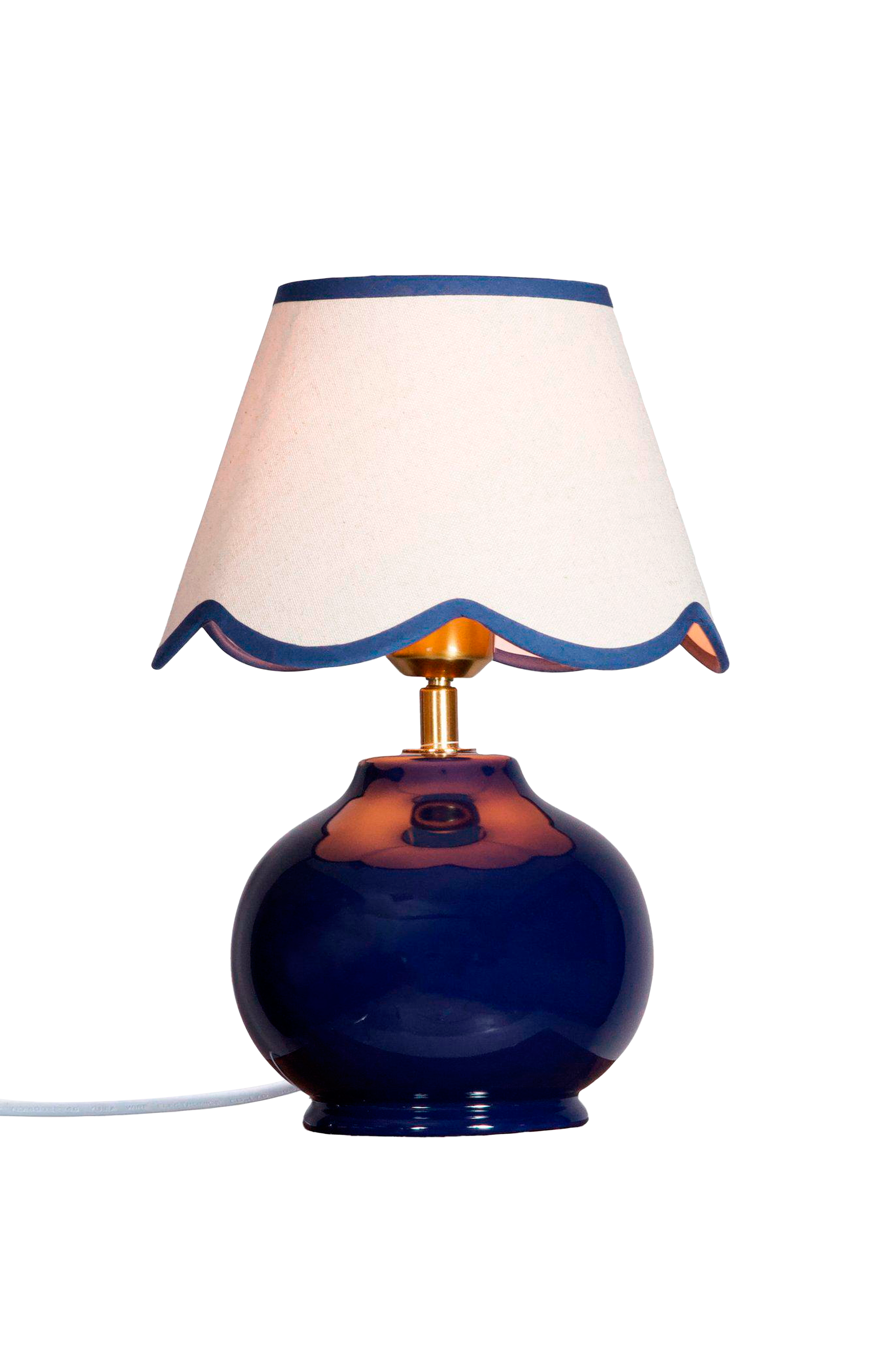 Nell bordlampen er en komplett lampefot med matchende skjerm. Den har en kuleformet keramikkfot med en linlignende skjerm som har en skålformet kant med matchende dekor. Lampens totale høyde er 35 cm, og den måler 23 cm i dybden og bredden. Plastkabelen er 170 cm lang og har en bryter 30 cm fra lampefoten. E27-sokkel. Maks. 40 watt. Ip20. Lyskilde er ikke inkludert.
