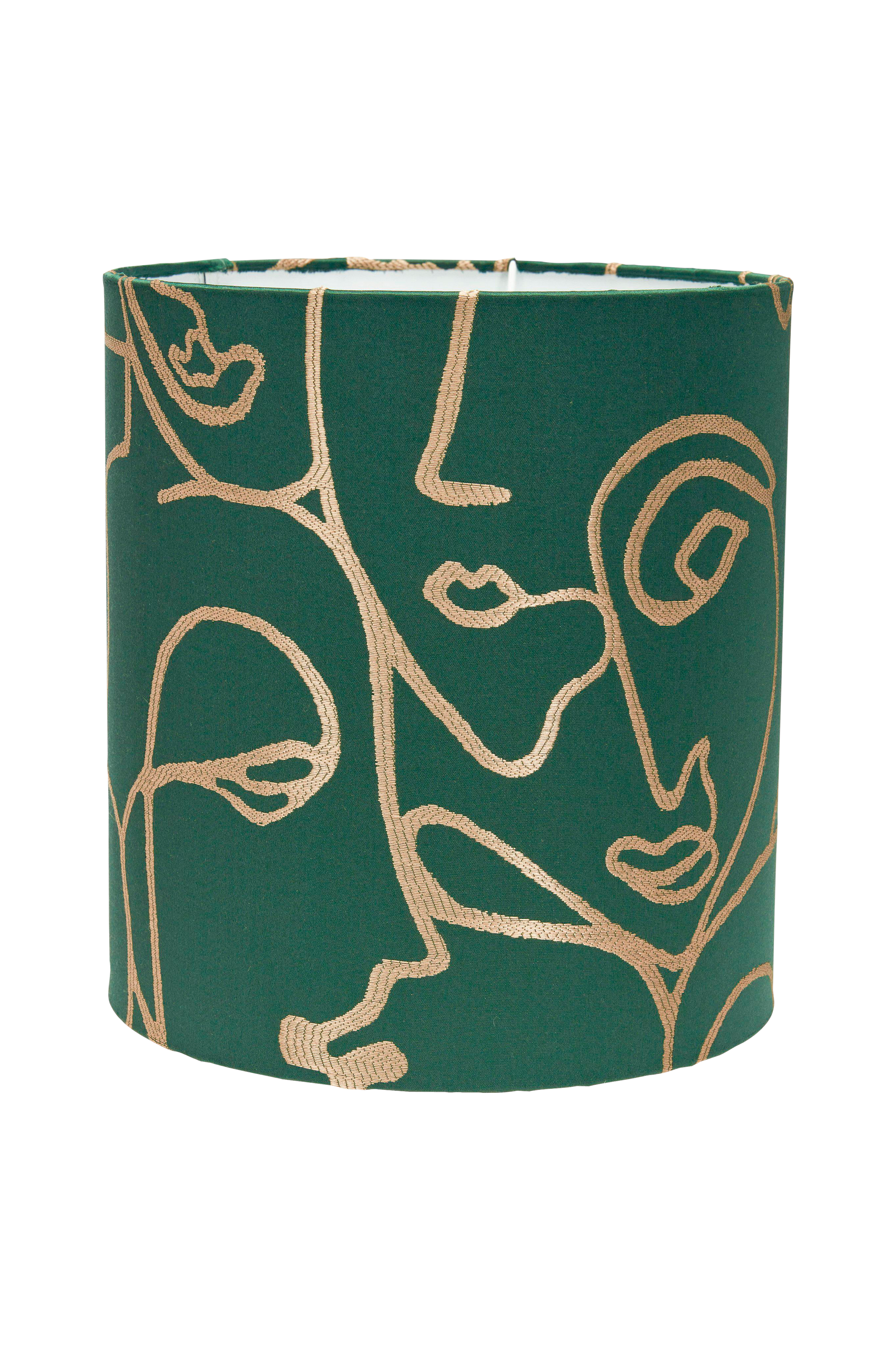 Celyn lampeskjerm i et mønstrete bomullsstoff. Skjermen har trykt mønster med bladverk og lys innside som gjør at lyset strømmer fint. Skjermen er sylinderformet og har E27 ringfeste.