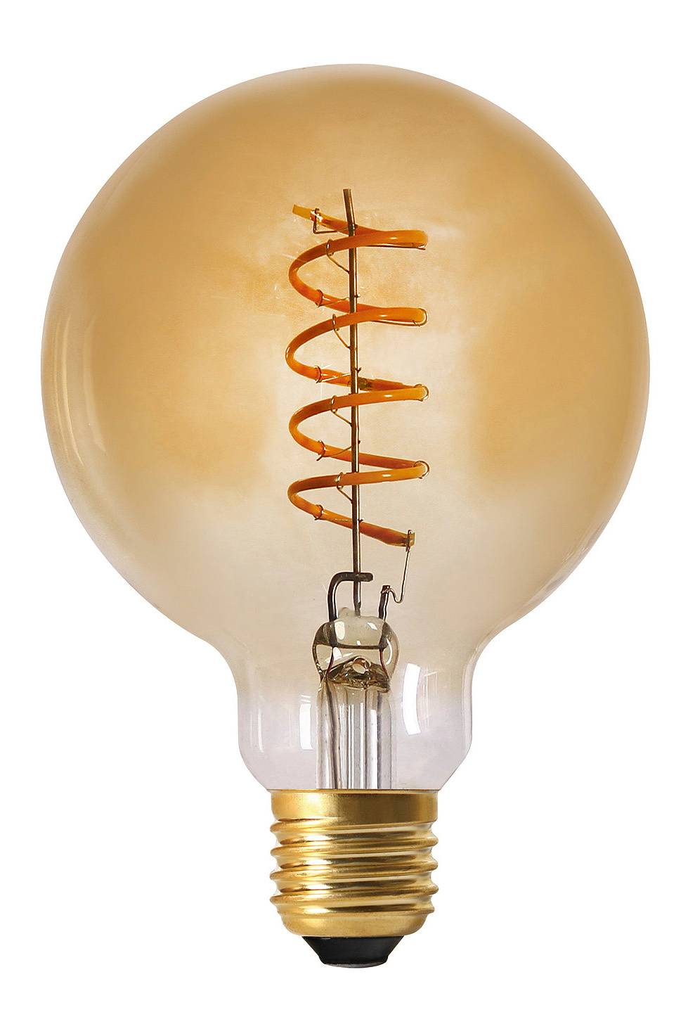 LED-lyspæren avgir et varmt lys med synlig spiralformet glødetråd for en koselig atmosfære. Med ravfarget glass og spiralformede LED-tråder for mykere lysfordeling. Ideell for stemningsfull belysning.