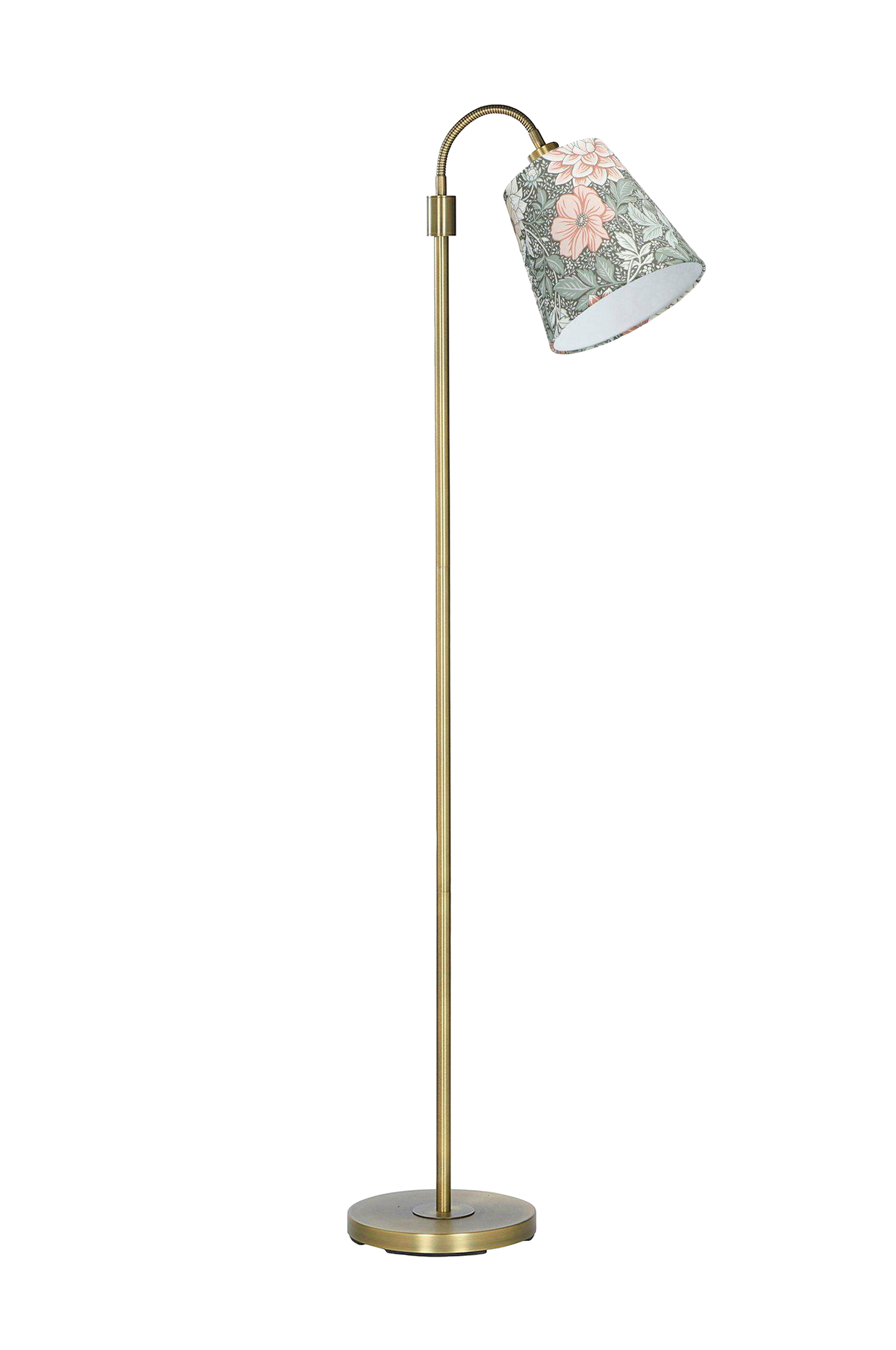 Gulvlampe amy flex i metall inkludert cia top fit skjerm. Skjermen har et mønster, i en rolig og beroligende farge, fra boråstapeter. Lampeskjermens mål: 20 cm i diameter nederst, 13 cm øverst og 19 cm i høyden. E27 toppmontering. Lampen leveres i nedfelt versjon og er enkel å montere. Den øvre delen av gulvlampen har en justerbar arm med e27 lampeholder, maks 25w, hvor også bryteren er plassert. 190 cm lang ledning med veggkontakt. Lyskilde kjøpes separat. Høyde 150 cm.