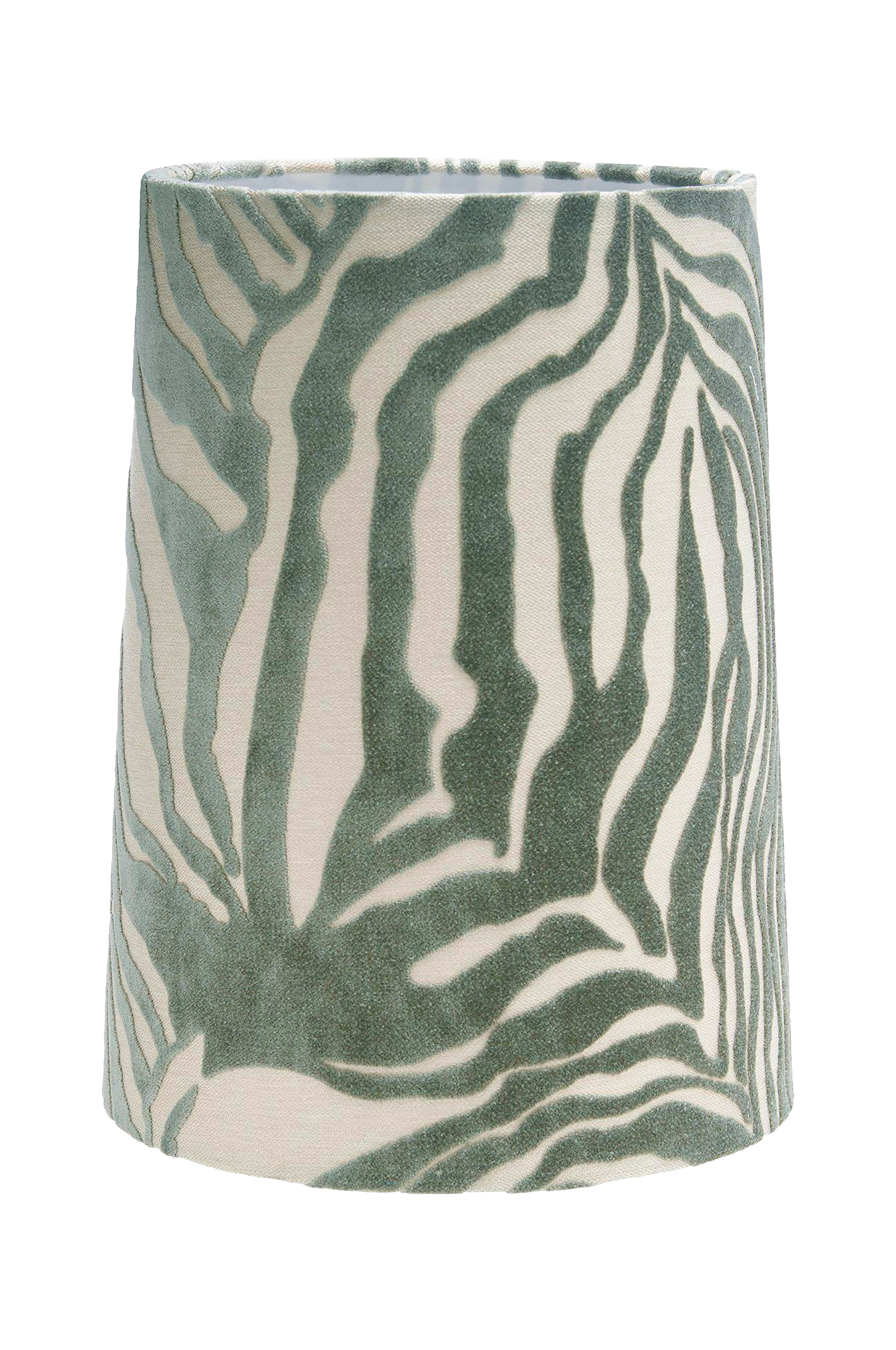 Annie lampeskjerm i sebramønstret stoff. Skjermen har rullede kanter og innbrettet skjøt som skaper en luksuriøs følelse av solid håndverk. Skjermen er sylinderformet og har hvit laminat som gir et fint lysskinn når lampen er tent. E27-sokkel som sitter 4 cm fra bunnen.