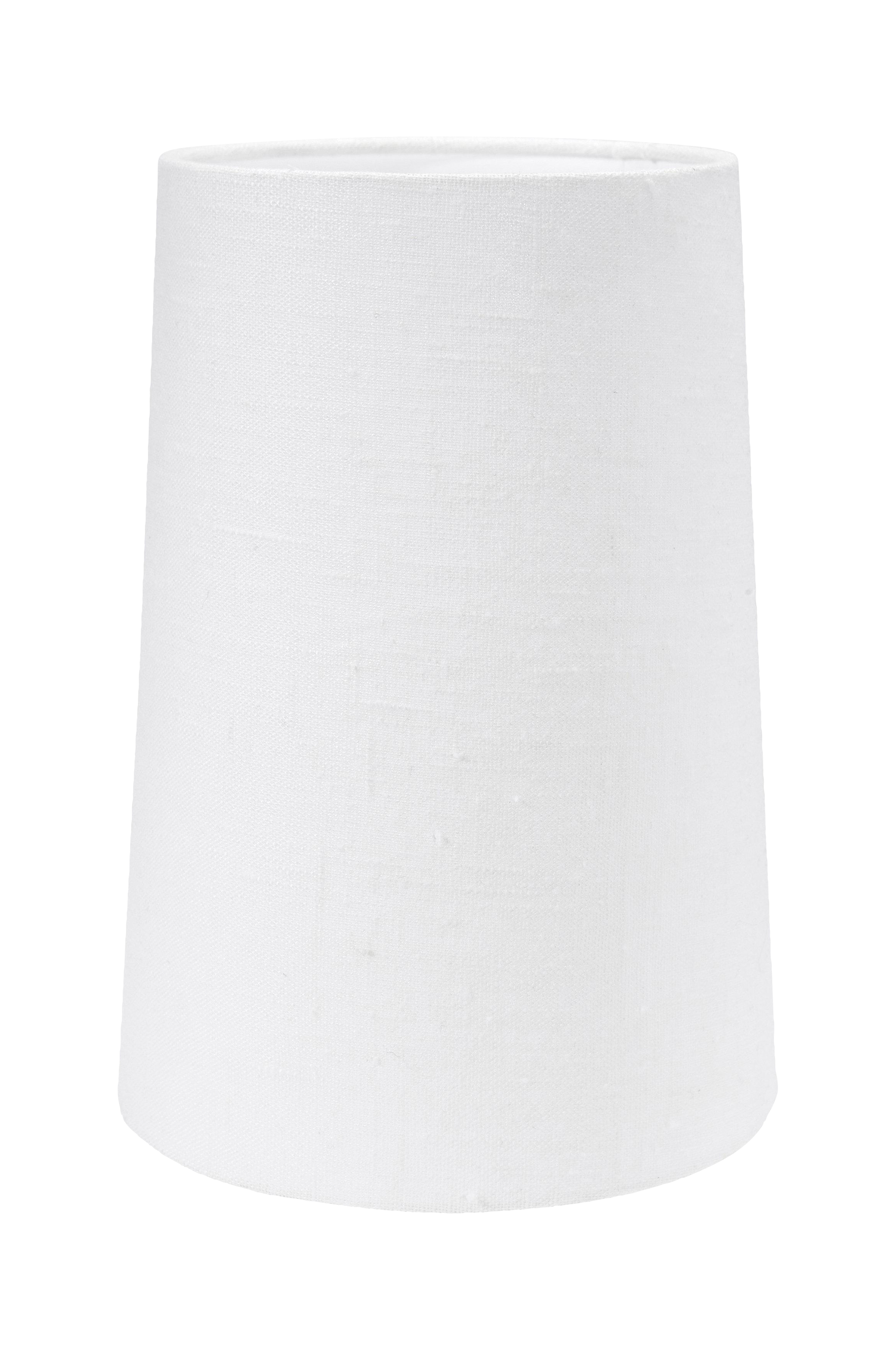 Annie lampeskjerm i linstoff. Skjermen har rullede kanter og innbrettet skjøt som skaper en luksuriøs følelse av solid håndverk. Skjermen er sylinderformet og har hvit laminat som gir et fint lysskinn når lampen er tent. E27-sokkel som sitter 4 cm fra bunnen.