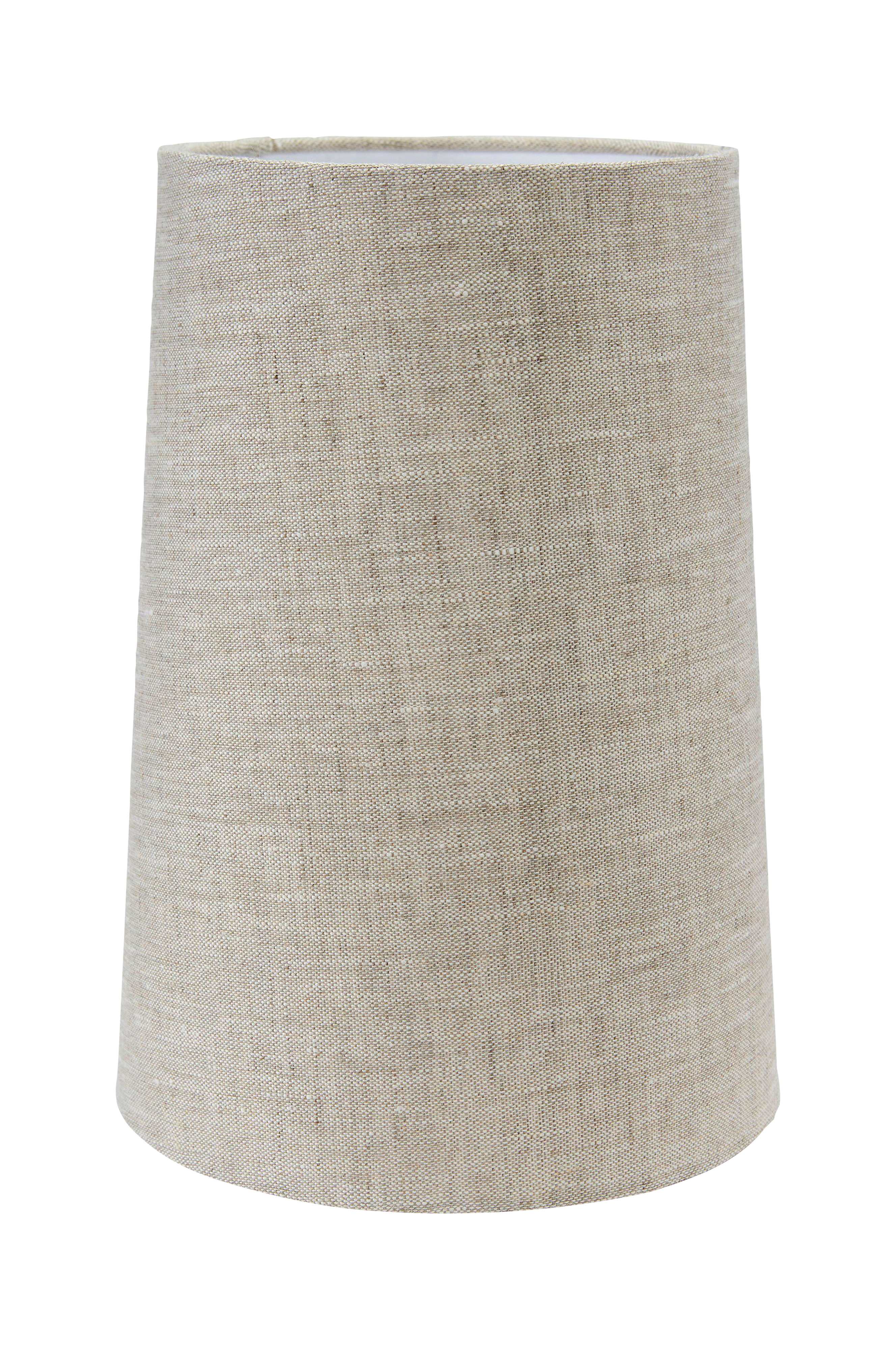 Annie lampeskjerm i linstoff. Skjermen har rullede kanter og innbrettet skjøt som skaper en luksuriøs følelse av solid håndverk. Skjermen er sylinderformet og har hvit laminat som gir et fint lysskinn når lampen er tent. E27-sokkel som sitter 4 cm fra bunnen.