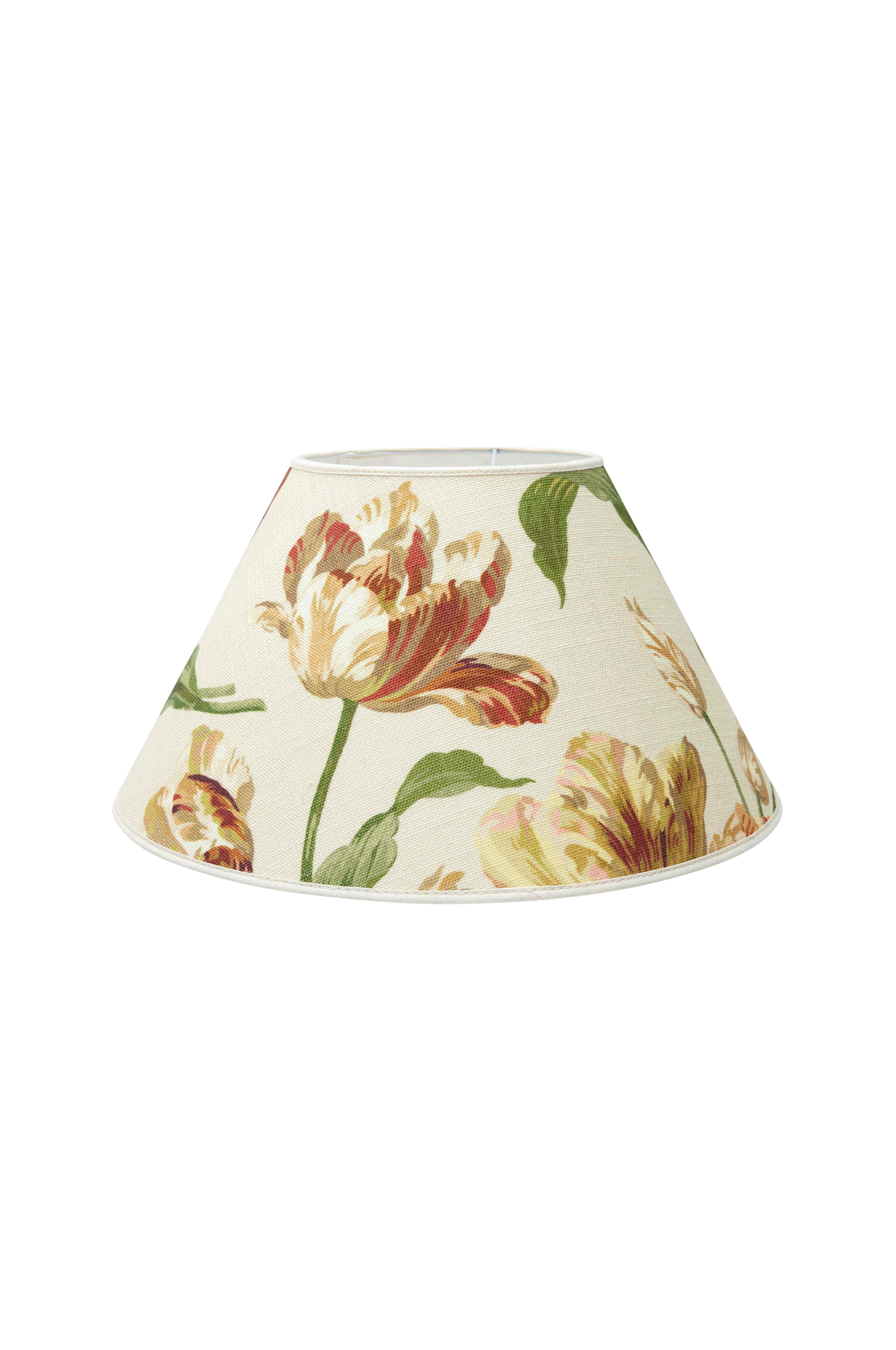 Empire lampeskjerm i linstoff med mønsteret Gosford fra Laura Ashley. Dette klassiske mønsteret med sine fargerike nyanser gir et eksklusivt og elegant inntrykk. Lampeskjermen er kjegleformet, og har lys innside med matchende kantebånd. Bruk gjerne en opal lyskilde som gjør at lyset strømmer fint i hele skjermen. Skjermen har E27 ringfeste. Lyspære E27 kjøpes separat.