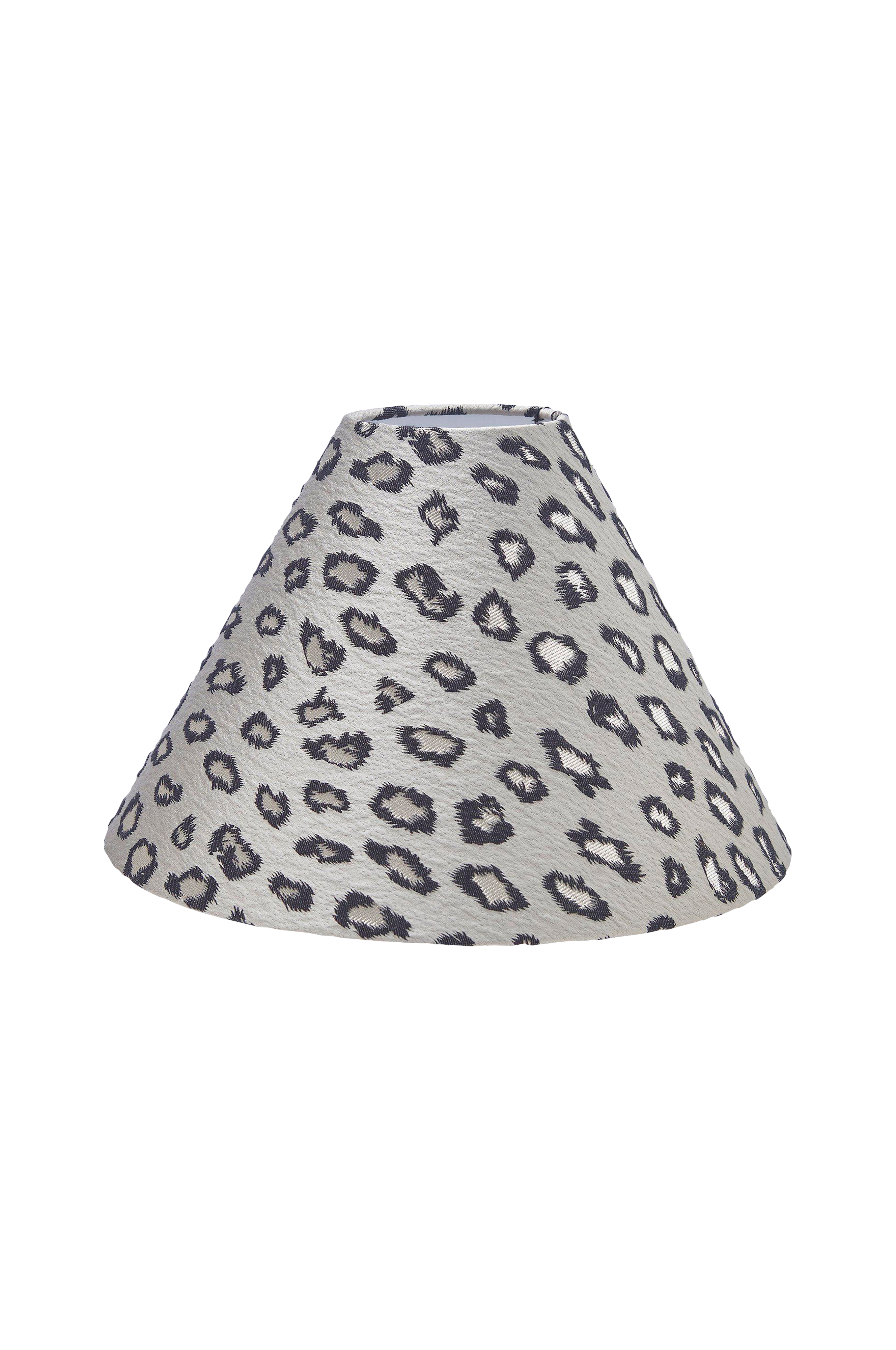 Livia lampeskjerm i et mønstrete stoff. Skjermen har rullede kanter og innbrettet skjøt som skaper en luksuriøs følelse av solid håndverk. Skjermen har lett skrånende form med hvit laminat som gir et fint lysskinn når lampen er tent. E27-ringfeste som sitter ca. 4 cm fra bunnen. Mål: Høyde 21 cm, bredde 30/10 cm.