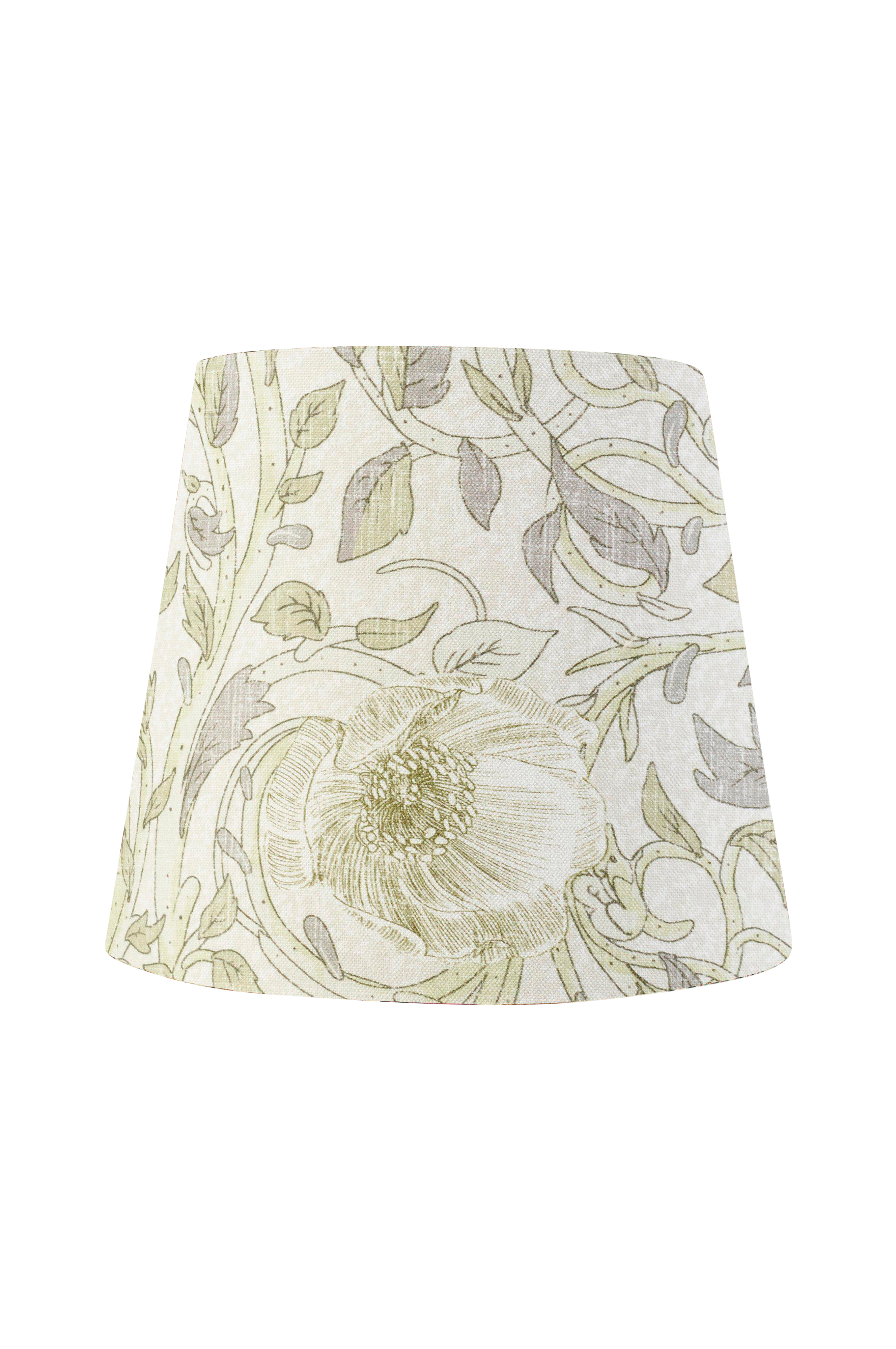 Den flotte lampeskjermen Mia i et bomullsstoff med et herlig mønster. Lampeskjermen har et klofeste som man fester lyspæren på. Høyde 12,5 cm og diameter 14/10 cm.