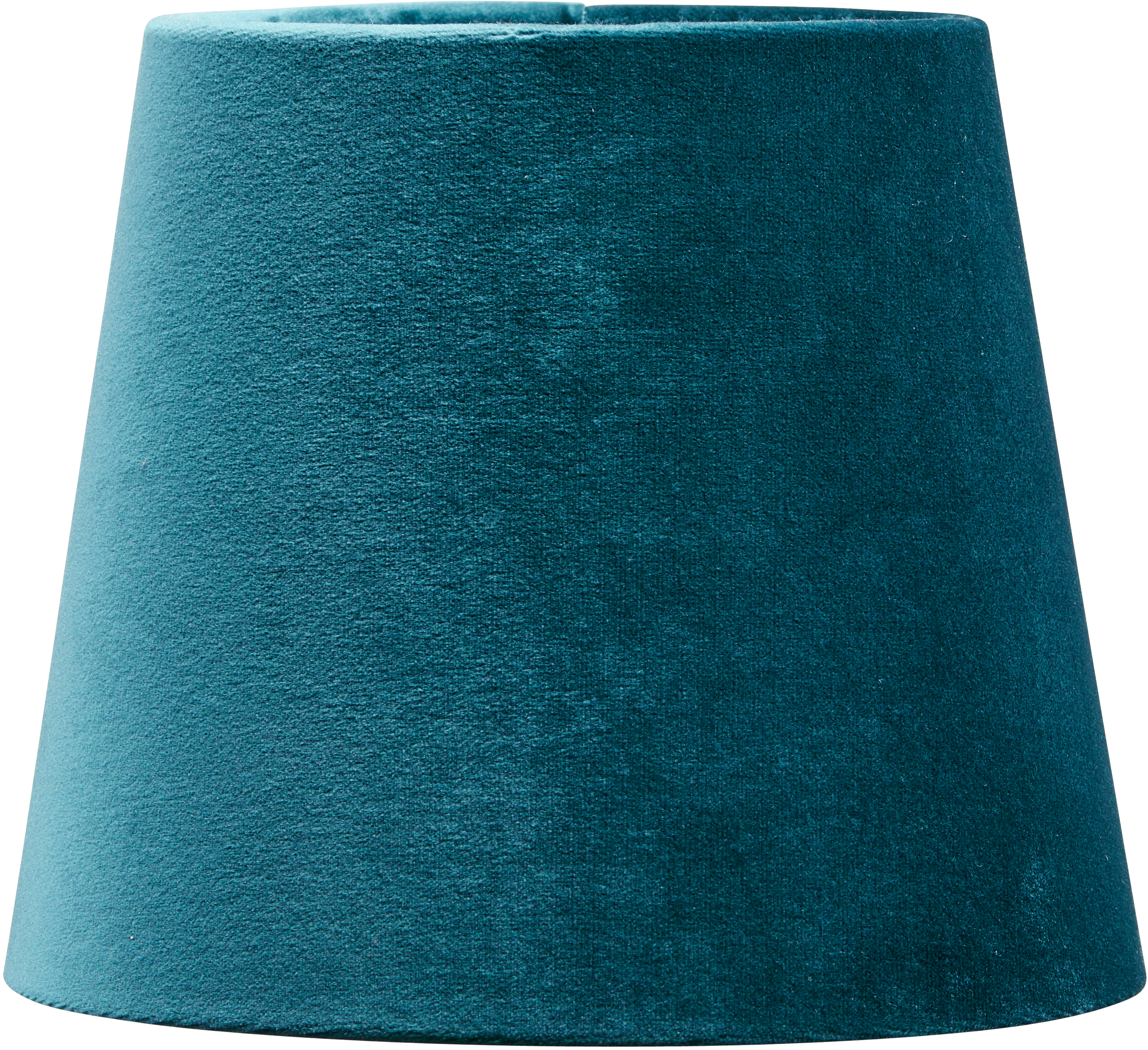 Lampeskjerm Mia. Rund og glatt i fløyel. Høyde 14,5 cm. Diameter nederst 17,5 cm, øverst 13 cm. Klofeste 5,5 cm fra nederkant.