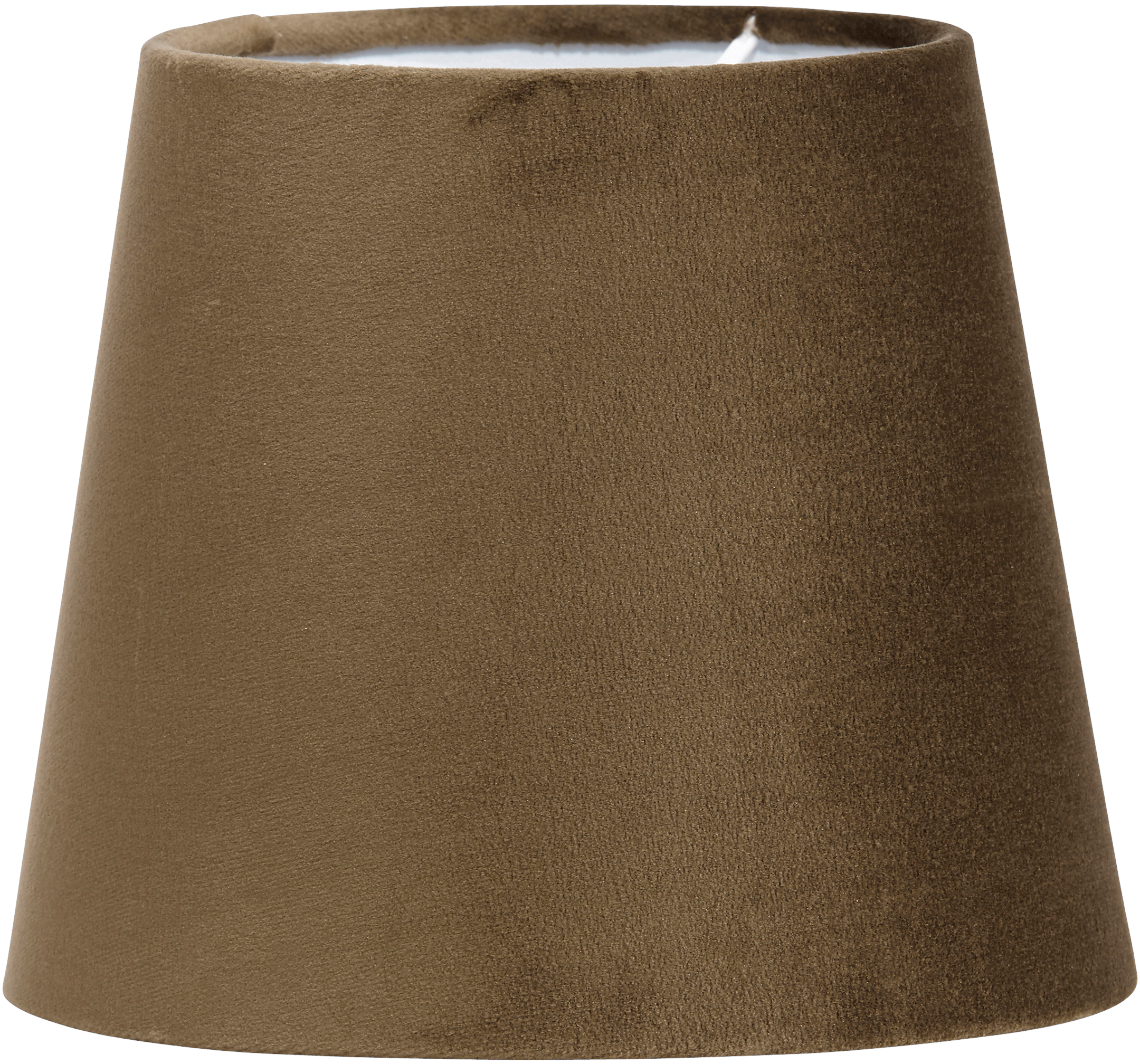 Lampeskjerm Mia. Rund og glatt i fløyel. Høyde 14,5 cm. Diameter nederst 17,5 cm, øverst 13 cm. Klofeste 5,5 cm fra nederkant.