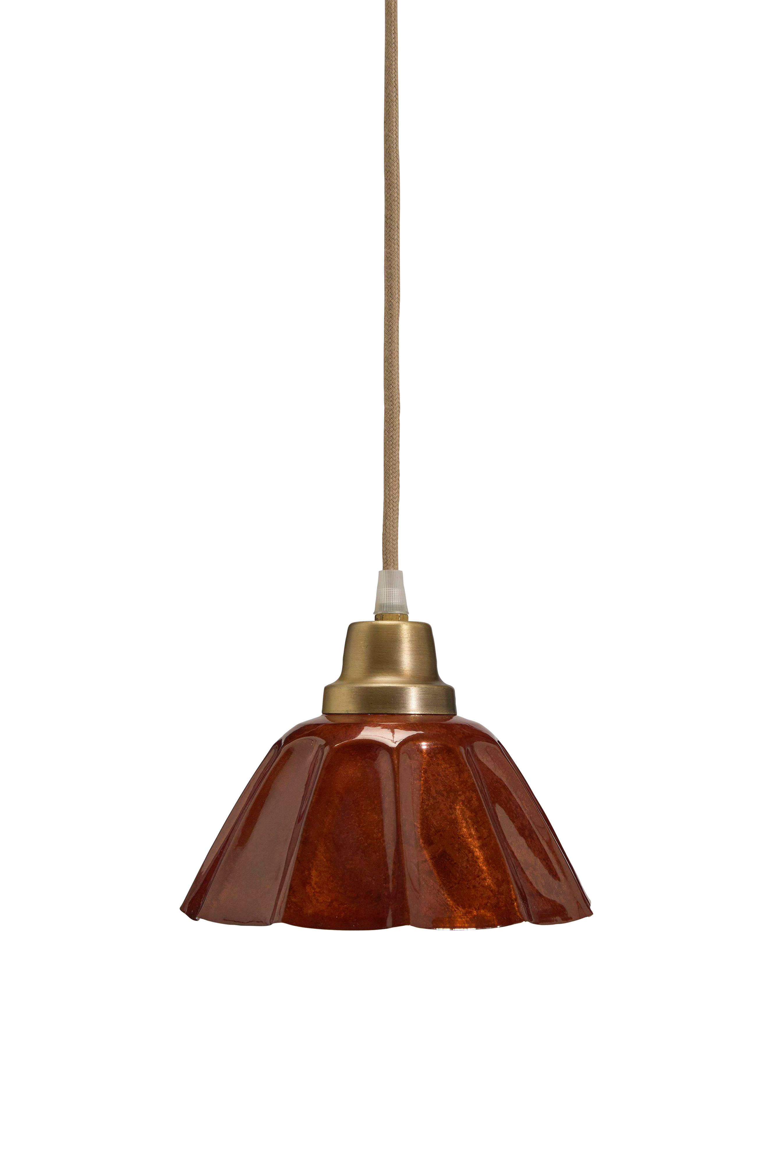 Liten pendellampe ester i metall med en emaljefinish som imiterer marmor. Vintage-følelse med tilsetning av messingbehandlet metall. Diameter nederst 17,5 cm, høyde 15 cm. 3,5 m linbeige tekstilledning med opphengskrok og flat EU-plugg. E27-sokkel, maks 25w. Ip20. Lyskilde ikke inkludert.