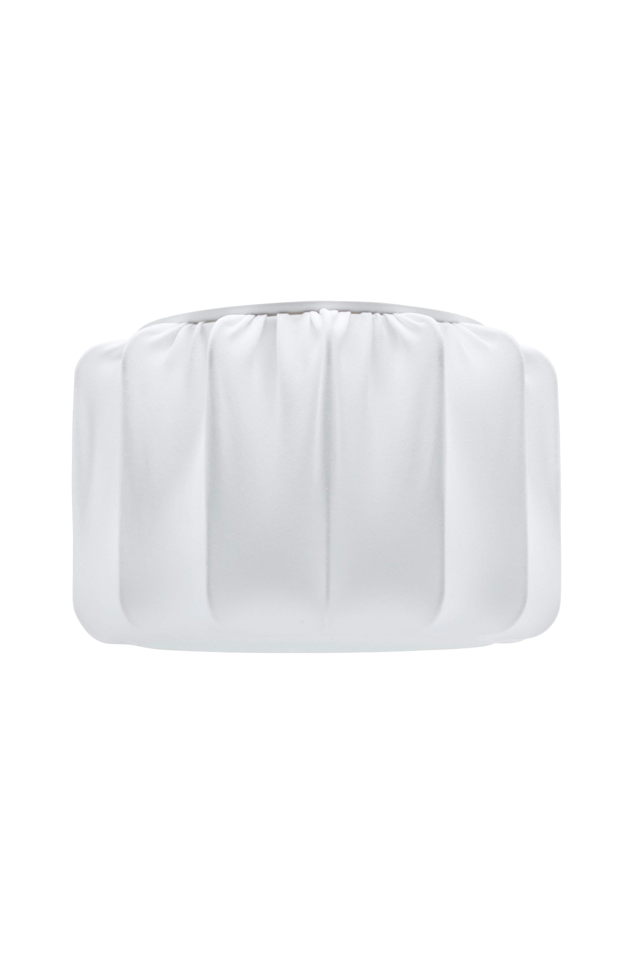 Plafond Iris, kledd i hvitt jerseystoff som sprer lyset på en behagelig måte uten gjenskinn. Skjermdiameter 30 cm, skjermhøyde 21 cm. Passer både i rom med lavt tak og rom med høyt tak. Leveres med takkrok for krokoppheng og 3 stk. E27-pæreholdere. Takkontakt og lyskilde kjøpes separat.