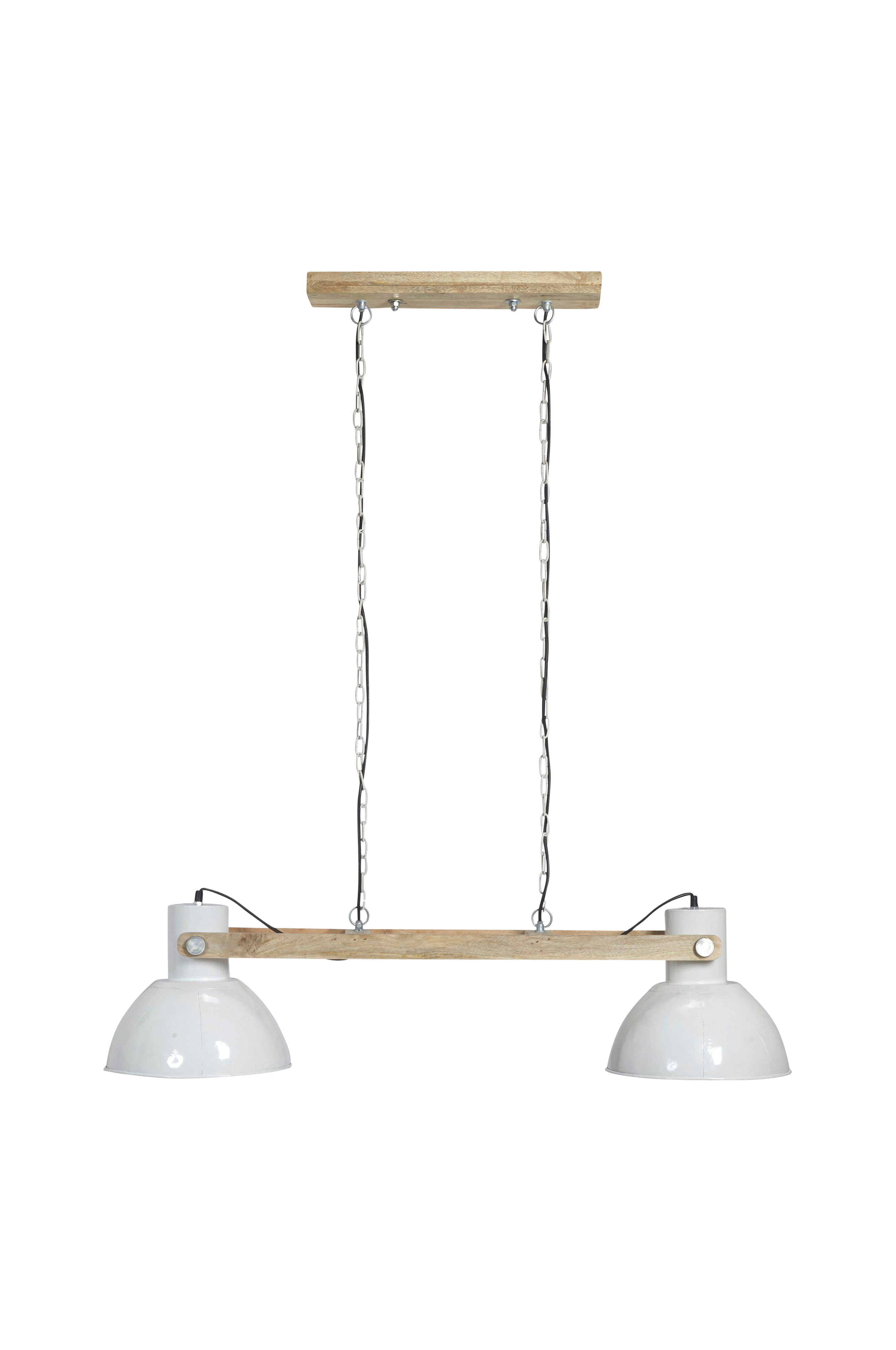 Taklampa Ashby dubbel är gjord i metall med detaljer av trä för en industriell stil. Taklampan är gjord för fast takmontering och är anpassad för ljuskällor med E27-sockel och en maxeffekt på 40W. Kabel och kedjelängden är 2 x 100 cm. Lampans höjd är 30cm, bredd 110 cm, djup 30 cm. Ljuskälla ingår ej.