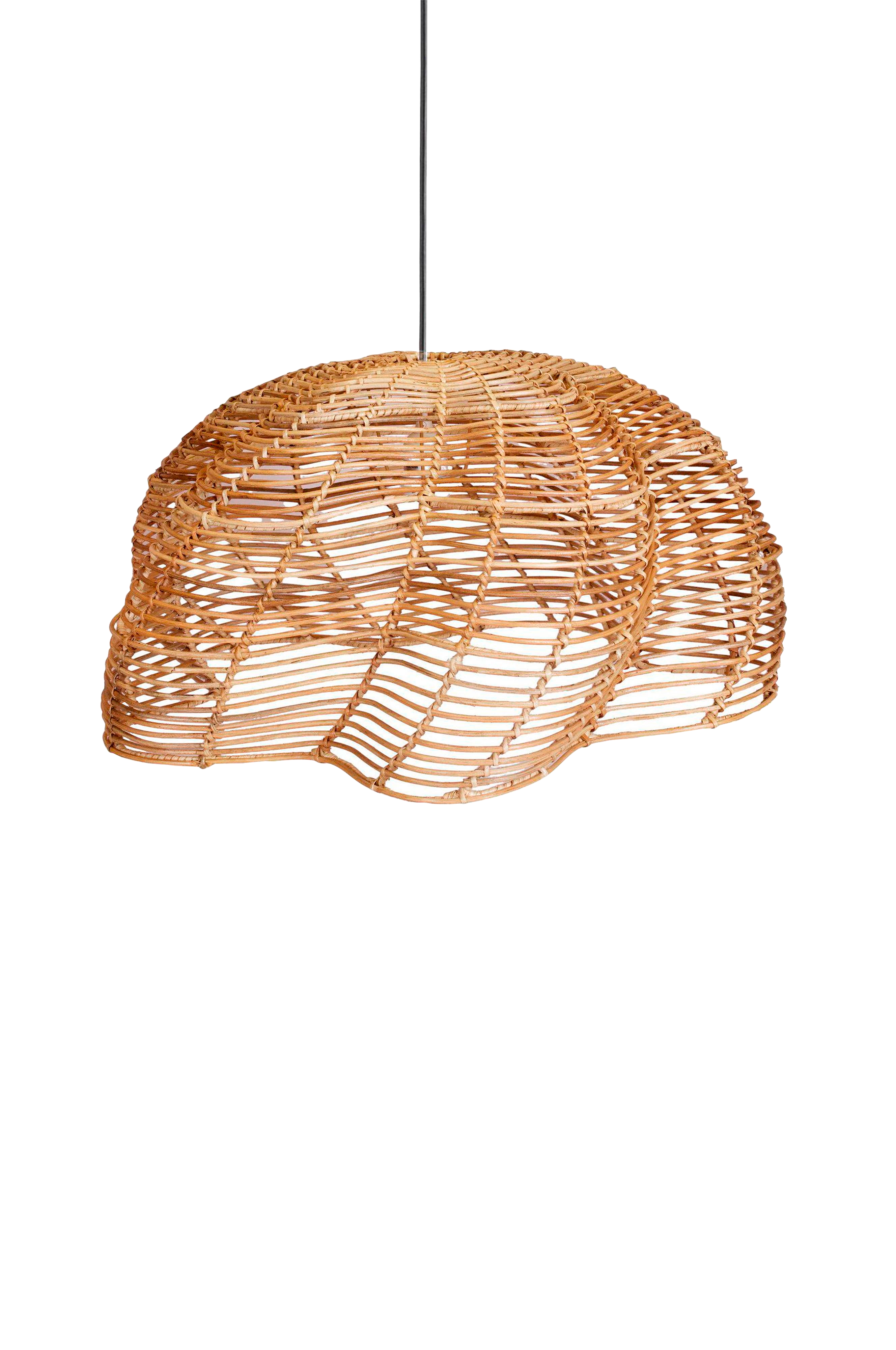 Mayla er en elegant taklampe laget av håndvevd naturrotting som gir hjemmet ditt en varm, organisk og innbydende atmosfære. Den nøye utformede lampeskjermen er laget av sammenflettede rottingstrenger, noe som gir hver lampe en unik tekstur og karakter. Den forsiktig vridde formen tilfører et moderne, men bohemsk preg til ethvert rom - perfekt for deg som ønsker et personlig og uttrykksfullt interiør. Siden lampen er laget av naturmaterialer, kan både form og farge variere noe, og overflaten kan utvikle en vakker patina over tid - en del av den autentiske sjarmen. Mayla måler 53 cm i diameter og 32 cm i høyden, og leveres med et svart kabelfeste som er egnet for utendørs bruk. Lyskilde maks. 40w (e27).