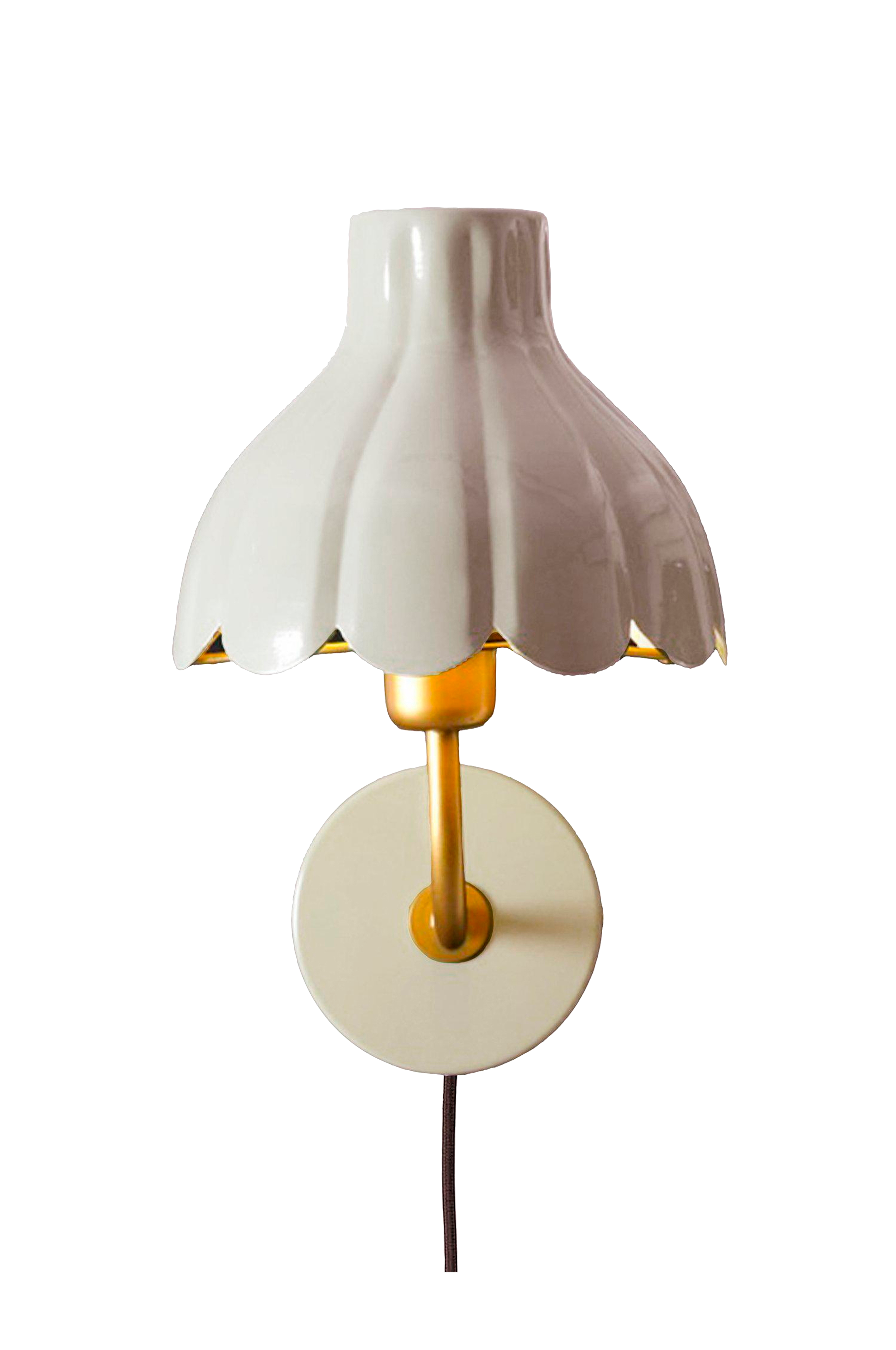 Wells vegglampe. Vår serie wells er designet og inspirert av blomsterblader. Tilgjengelig i flere farger og modeller. Alle med en gullfarget innside som gir en varm glød. Hver skjerm er laget for hånd. Wells vil med sin feminine form og nydelige farger gi et friskt uttrykk i ethvert oppholdsrom. diameteren på skjermen er 21 cm og høyden er 18 cm. Lampens totale høyde er 35 cm, den totale bredden er 21 cm og den totale dybden til veggen er 31 cm. 1,6 m plastkabel med bryter plassert ca. 15 cm fra lampen. E27-sokkel. Maks. 25 watt. Ip20. Pære ikke inkludert.