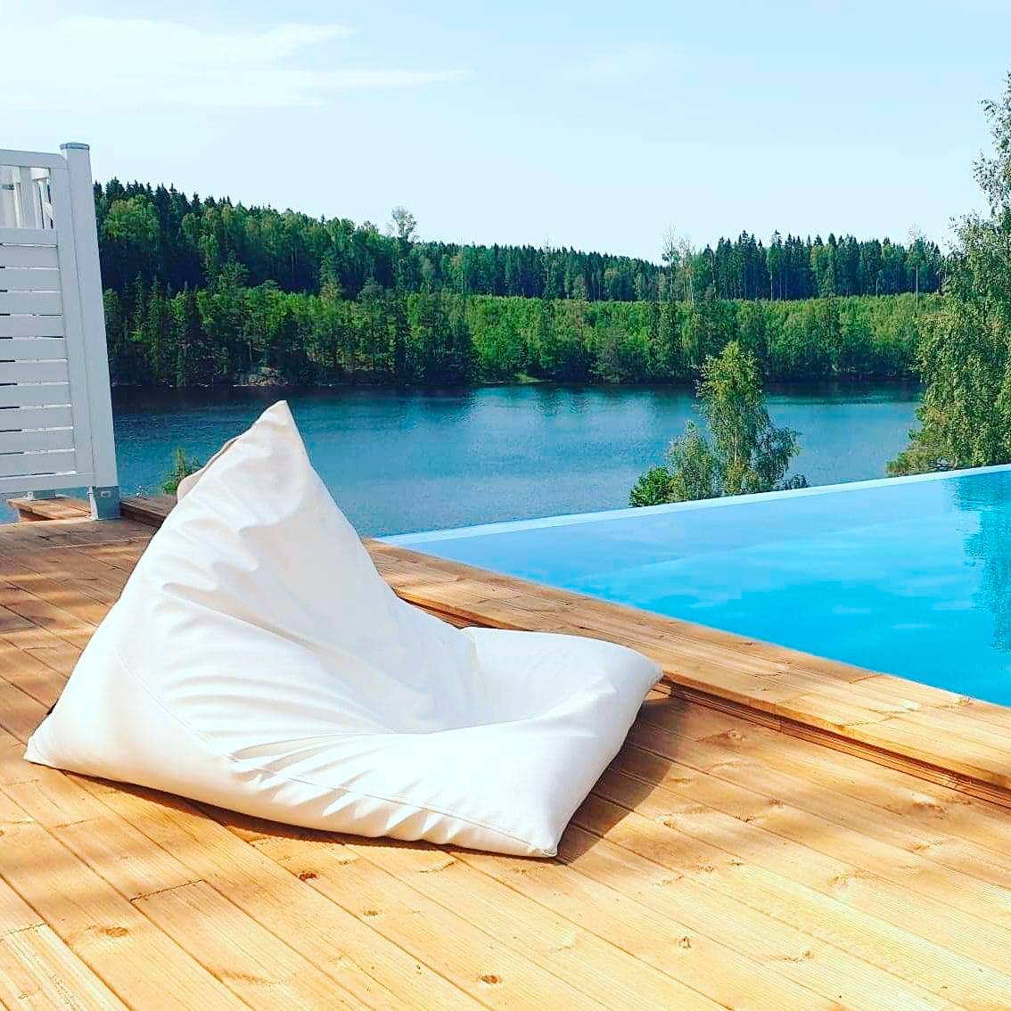 Razz - trekantet sittesekk, som skapt for å nyte ekstra komfort. Mykt møbel med behagelig ryggstø og plastkuler inni som tilpasser seg kroppens former for komfortabel avslapping. Denne håndlagde sittesekken har håndtak på toppen slik at det skal være lett å flytte den rundt.
