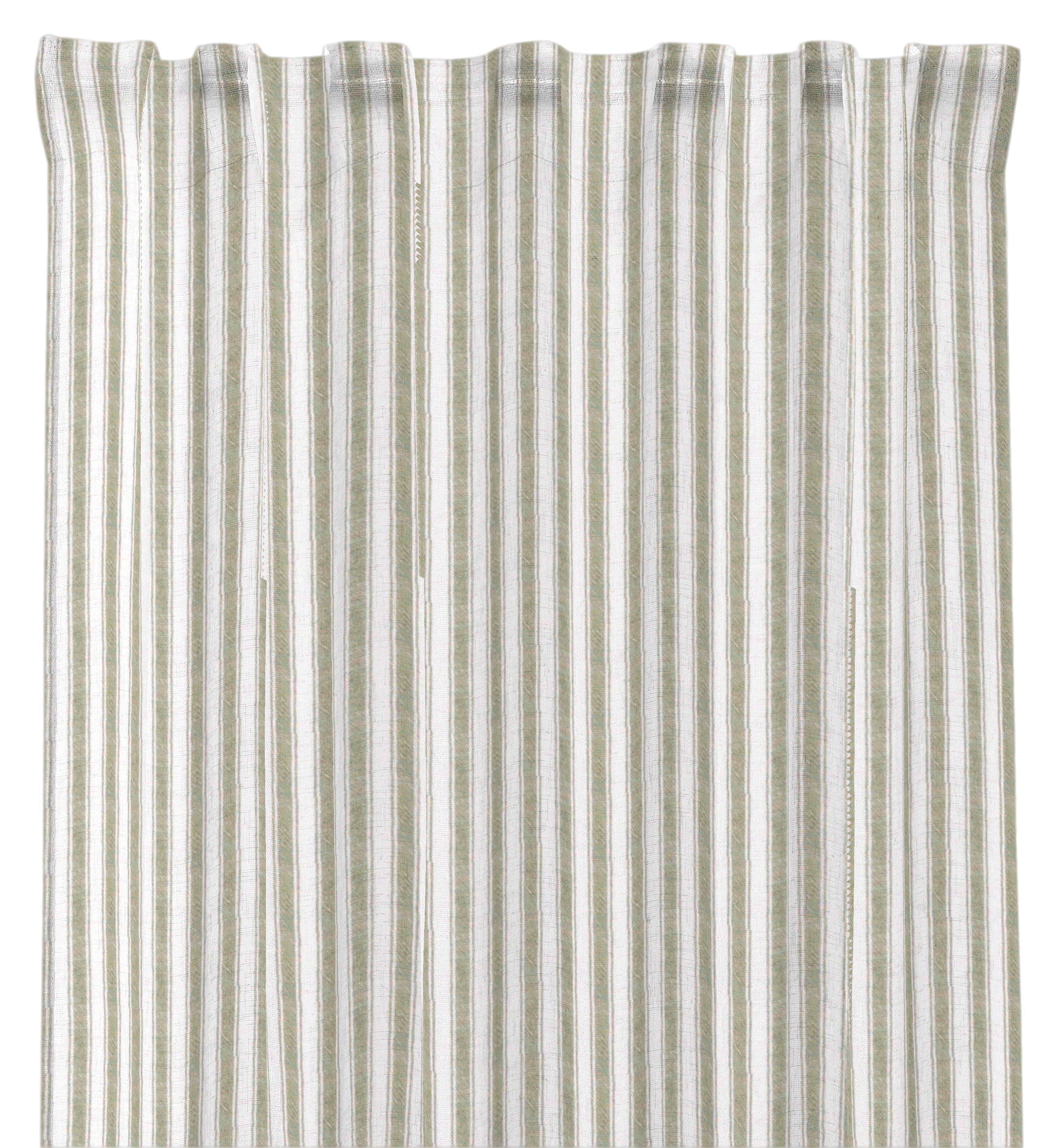 2-pakning med smalstripete ferdige multibåndsgardiner i 100 % bomull, med overlocket kant.