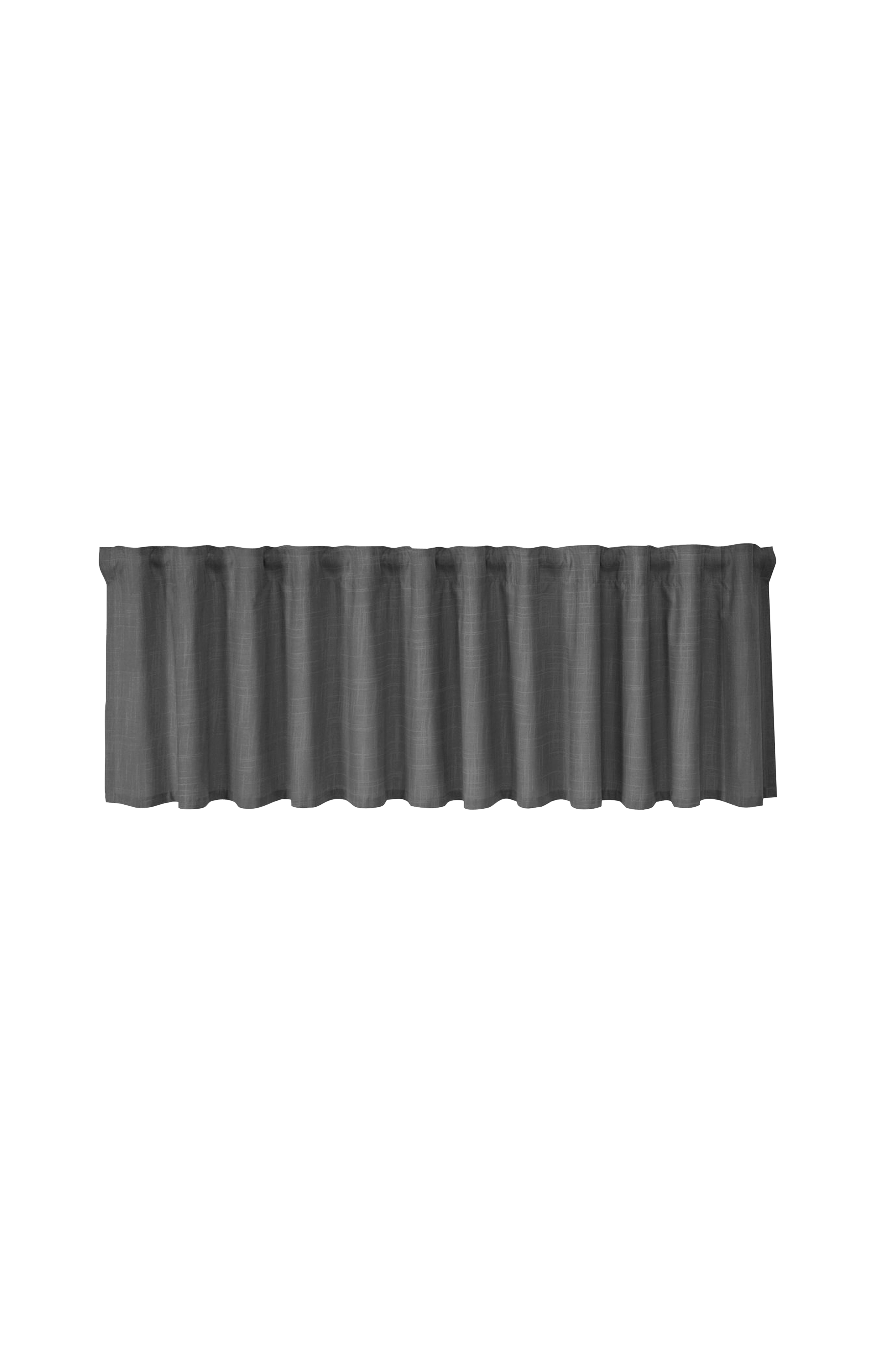 Ferdiglagd gardin i ensfarget stoff med flerbåndsoverside. Vakkert stoff av høy kvalitet med slub-effekt.