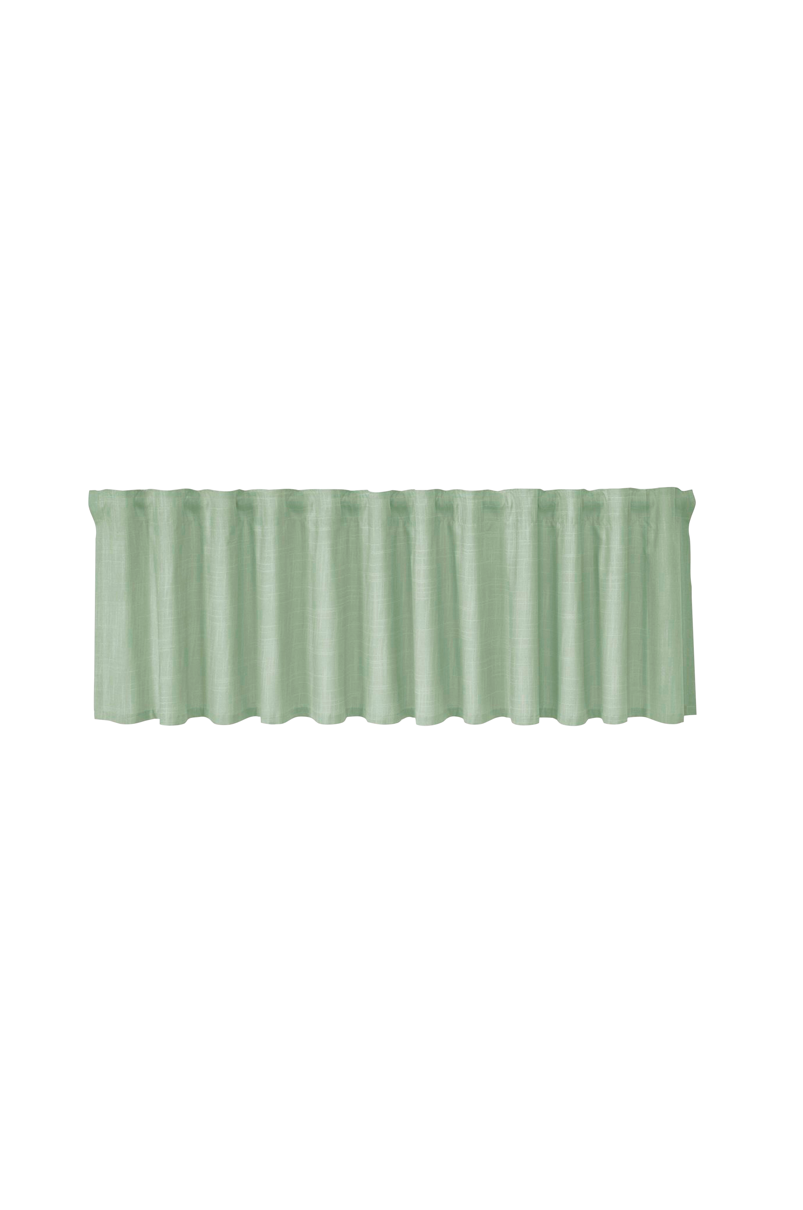 Ferdiglagd gardin i ensfarget stoff med flerbåndsoverside. Vakkert stoff av høy kvalitet med slub-effekt.