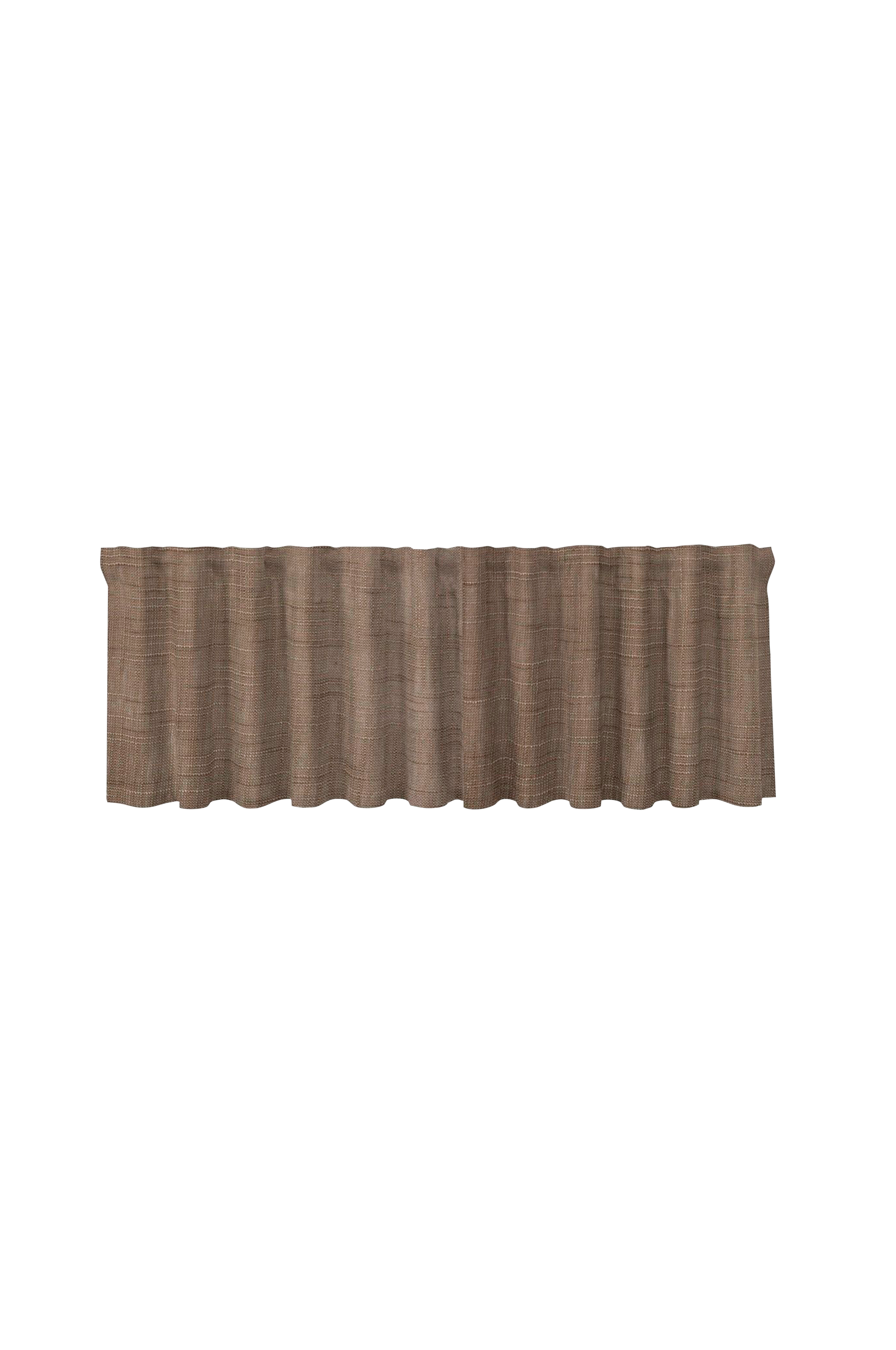 Ferdiglagd gardin i ensfarget stoff med flerbåndsoverside. Vakkert stoff av høy kvalitet med slub-effekt.