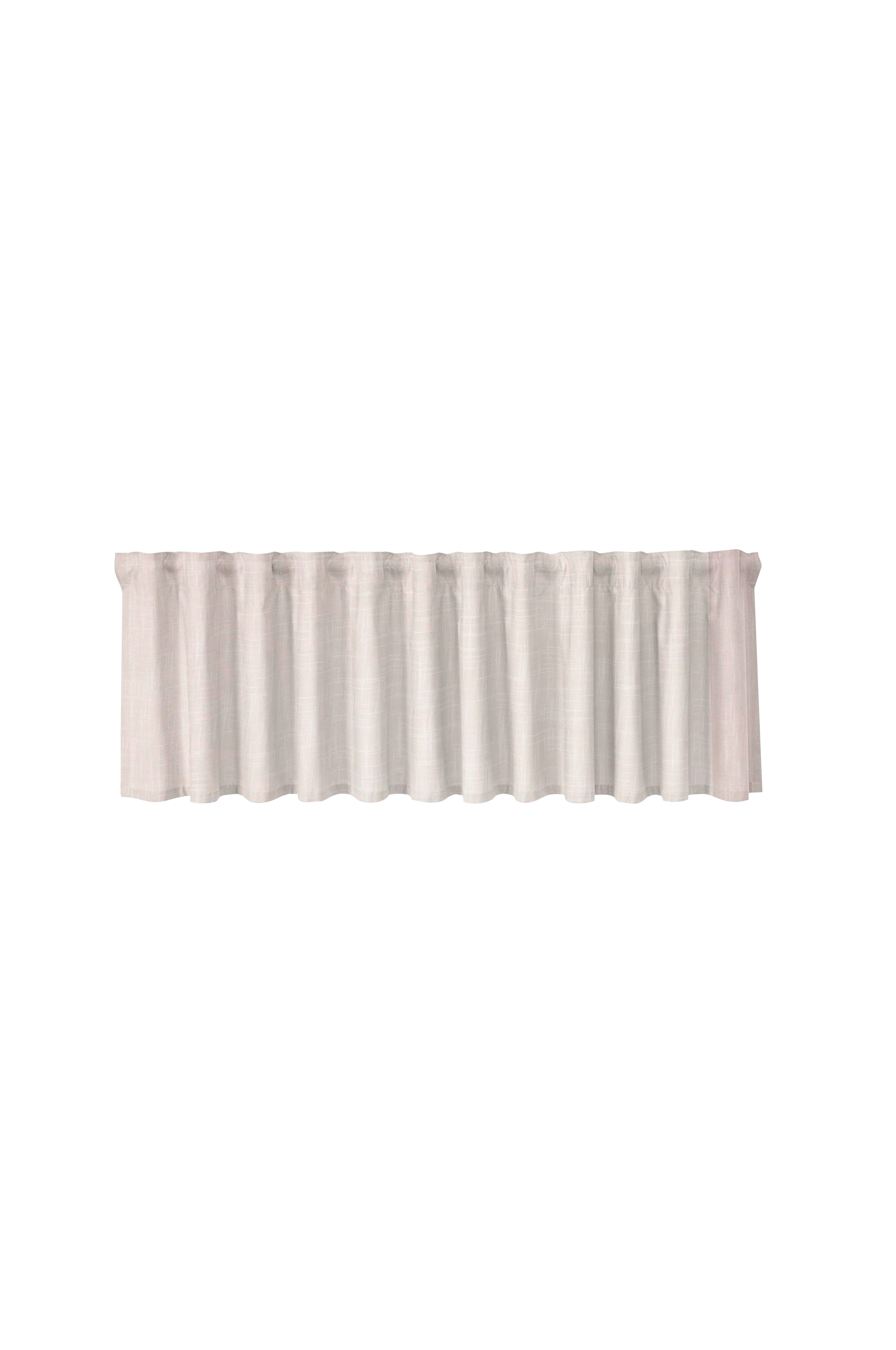 Ferdiglagd gardin i ensfarget stoff med flerbåndsoverside. Vakkert stoff av høy kvalitet med slub-effekt.