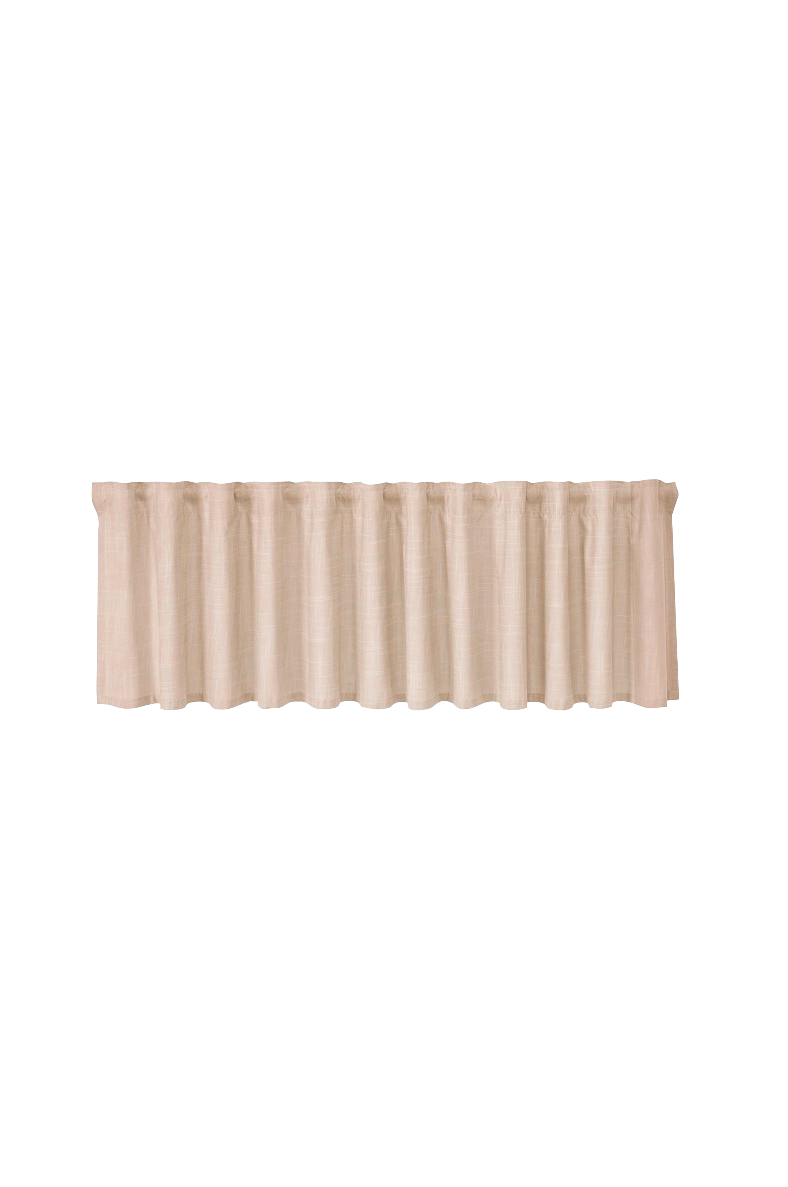 Ferdiglagd gardin i ensfarget stoff med flerbåndsoverside. Vakkert stoff av høy kvalitet med slub-effekt.