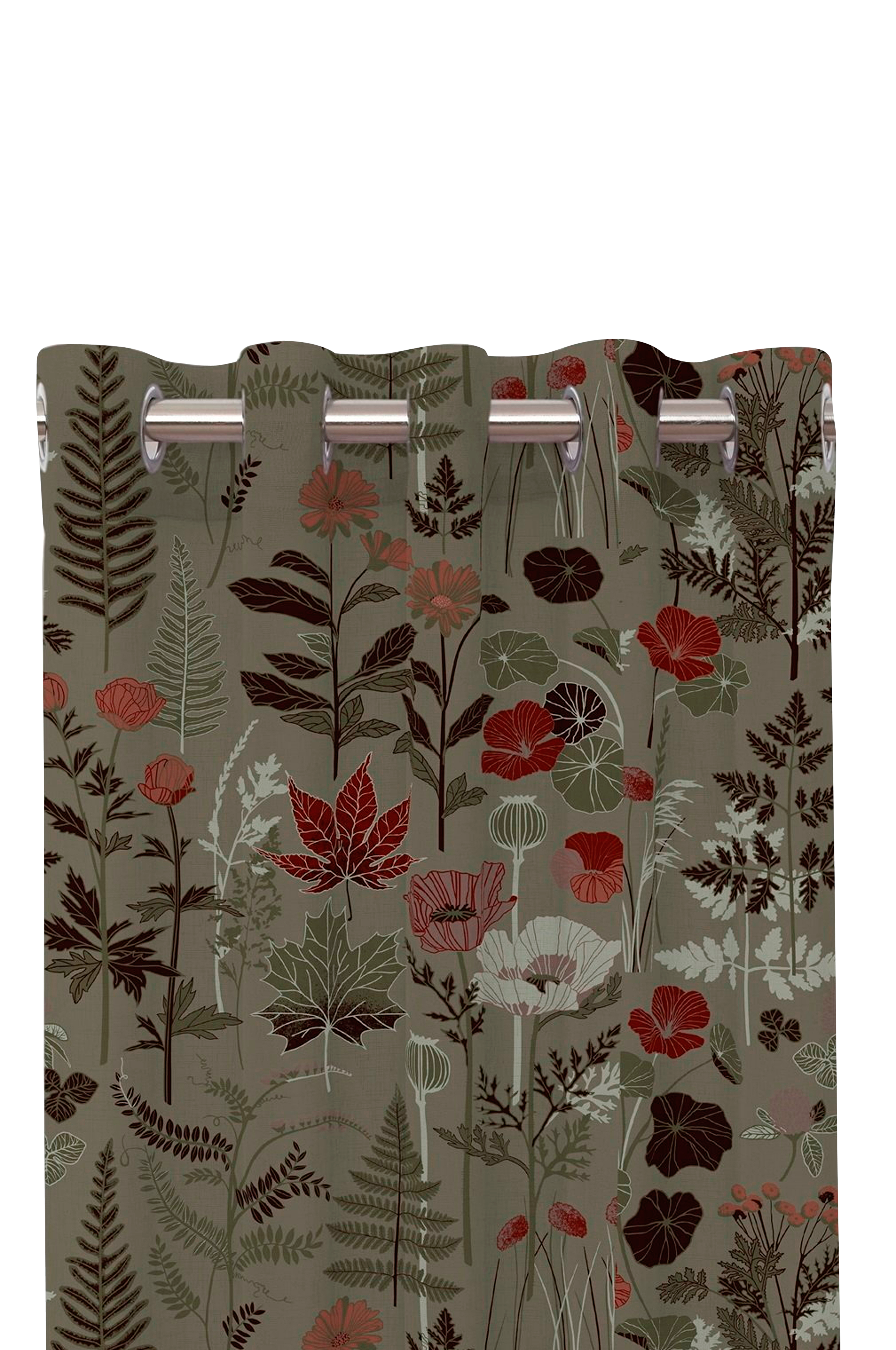 Gardin med øyeletter og hageinspirert mønster i toveis sluv for en nydelig effekt, 2-pakning, overlock nederst. Mønsteret er designet av en svensk designer.