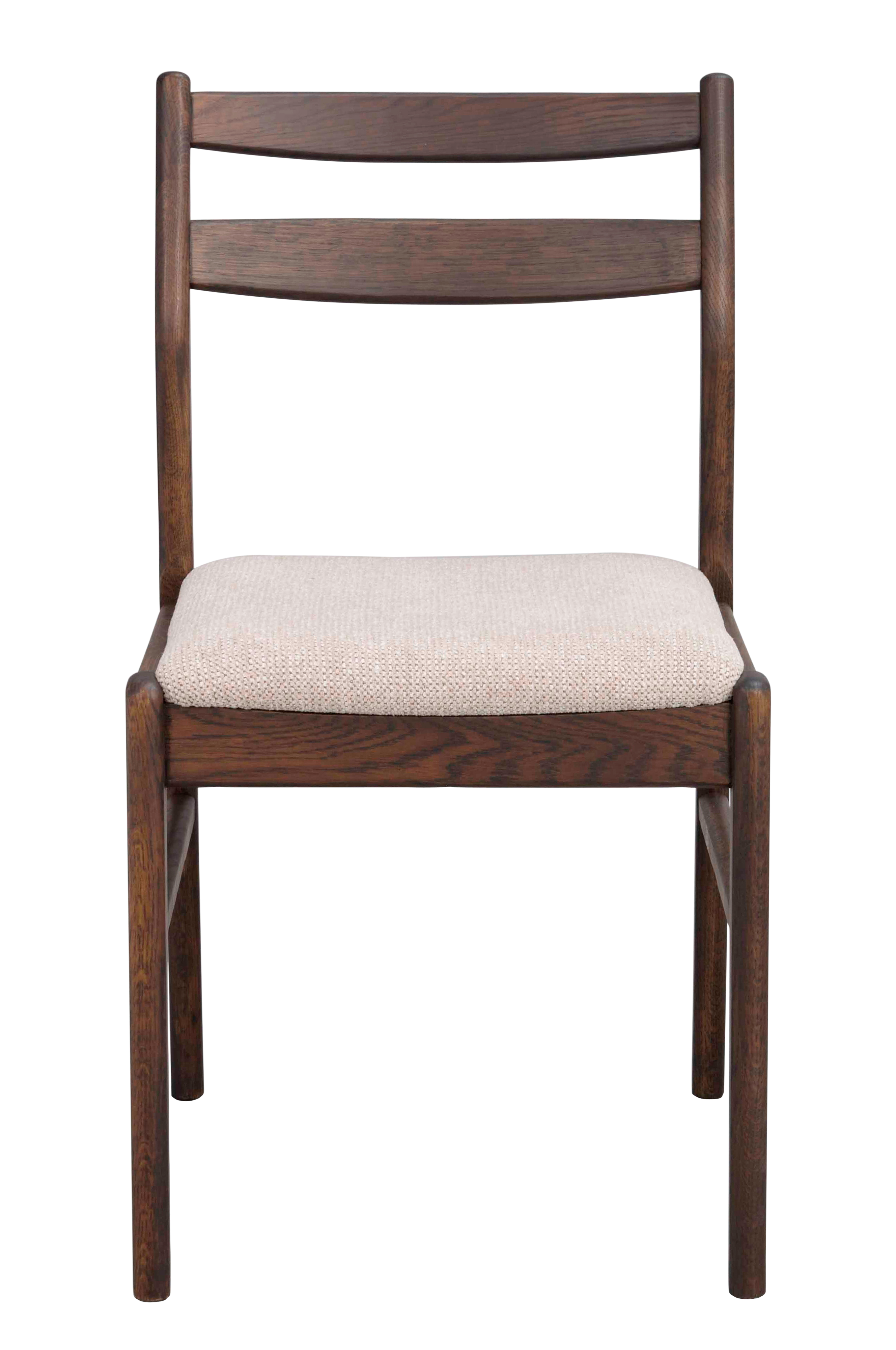 Setet er trukket i et slitesterkt, beige stoff som gir stolen tekstur og et sofistikert uttrykk. Hele sidepaneler og en smart konstruksjon gjør stolen enkel å montere, samtidig som de gjennomtenkte detaljene forsterker helhetsinntrykket. Kerwin er en moderne klassiker med skandinavisk ånd, som gir karakter til ethvert hjem. Materialbeskrivelse Lakkert massiv eik, sete i bøyd kryssfiner med stilrent stoff.