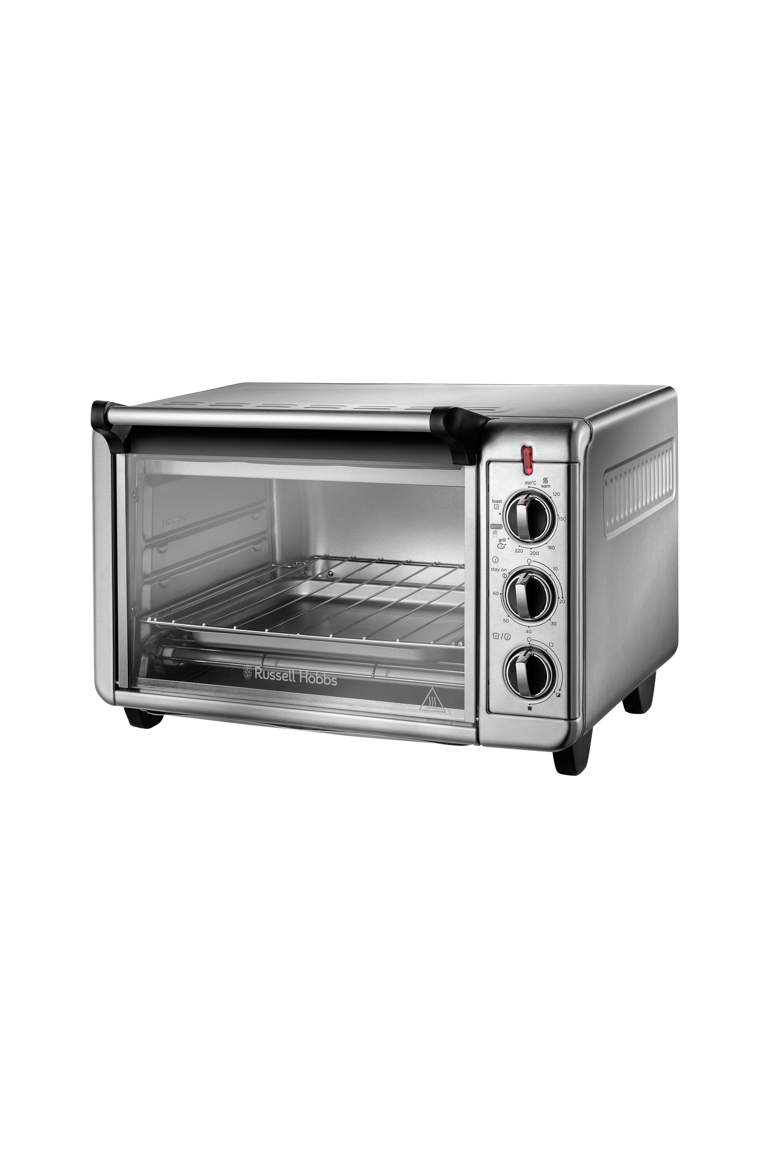 Miniovnen inneholder pommes frites-rist, bakeplate, ovnsrist og 3 forskjellige posisjoner i ovnen, avhengig av hvilken mat du skal tilberede. For maksimal kontroll finnes en praktisk 60 minutters timer som varsler når maten er klar. Et eksternt smulebrett under ovnen kan løsnes for enkel rengjøring.
