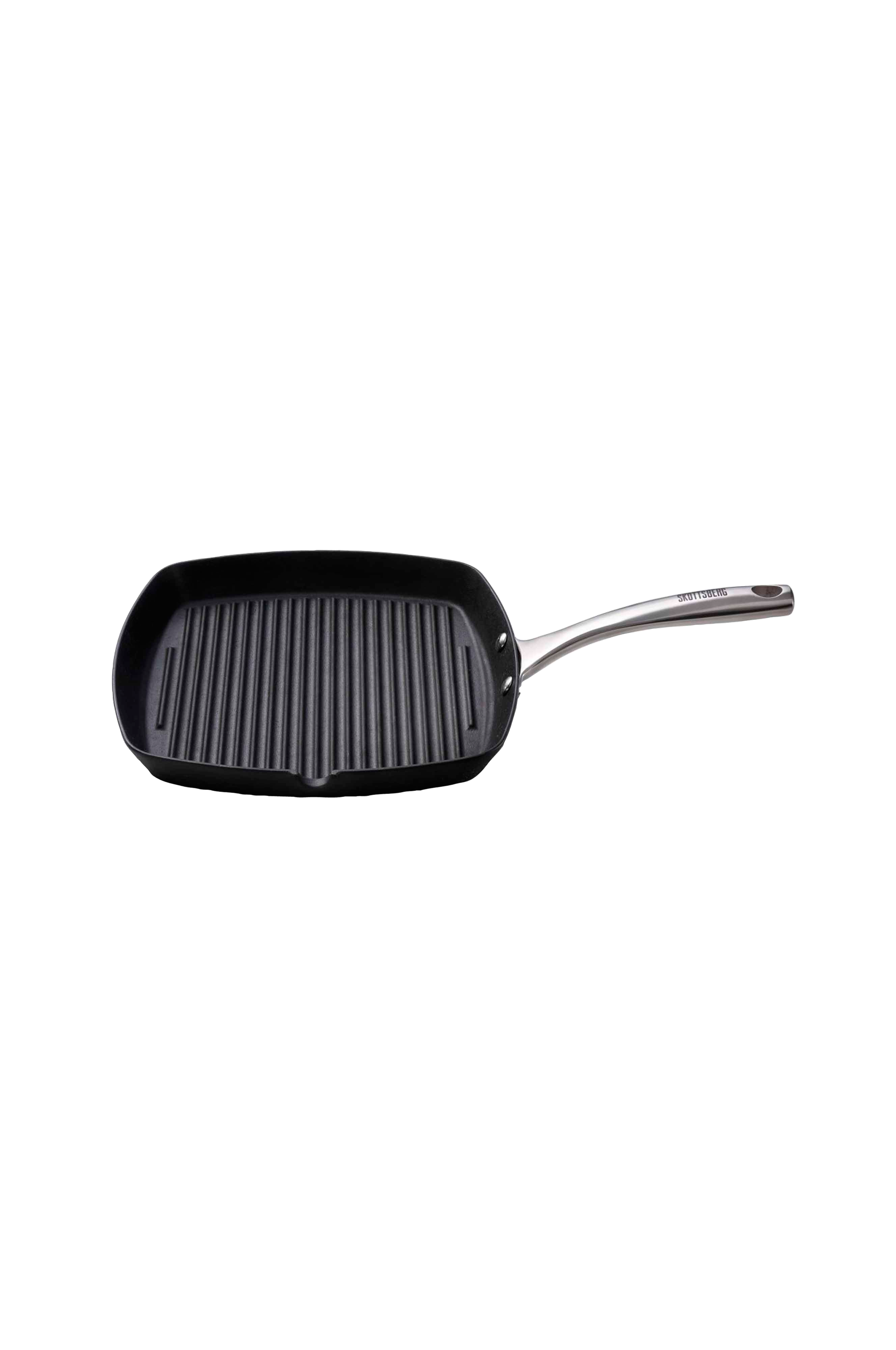 Grillpanne i støpejern med flere fantastiske unike egenskaper. Pannen er behandlet, noe som innebærer at vegetabilsk olje er bakt inn i pannen for å sikre at den er klar til bruk rett etter kjøpet. Den er produsert av en eneste tradisjonell støpning av smeltet jern. Grillpannen varmes langsomt opp, men beholder varmen lenge. Håndtaket på grillpannen er hult, noe som sikrer at det ikke varmes opp og lett kan gripes. Grillpannen er varmebehandlet, noe som innebærer at den er rust- og ripebestandig. Som et resultat kan tåler den høye temperaturer og er derfor svært egnet til å steke eller steke fisk og kjøtt, grille grønnsaker eller lage den ultimate toasten.