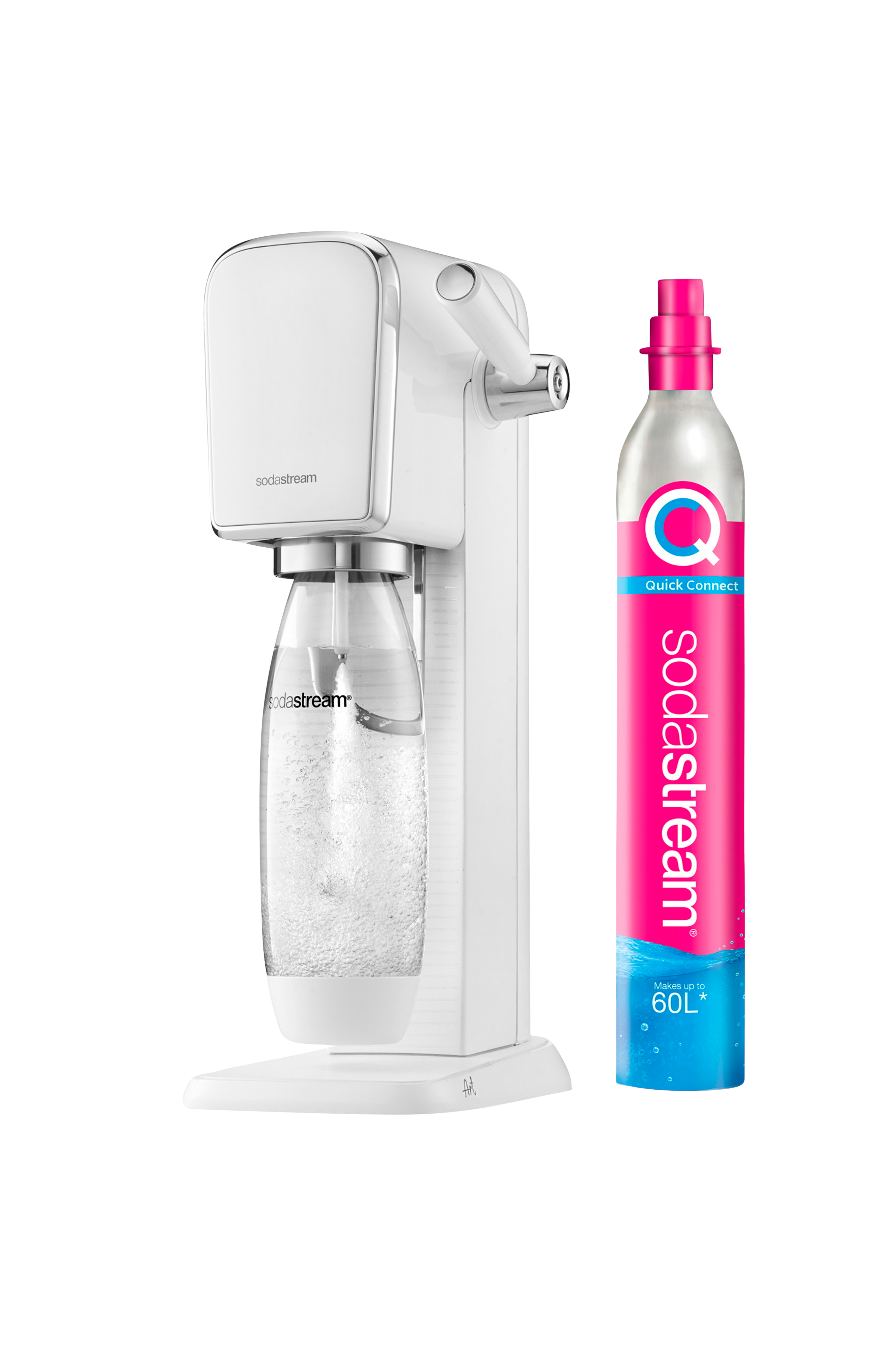 Den nye kullsyremaskinen SodaStream ART har retrodesign og et praktisk håndtak som gjør det enkelt å tilsette nøyaktig riktig mengde bobler.