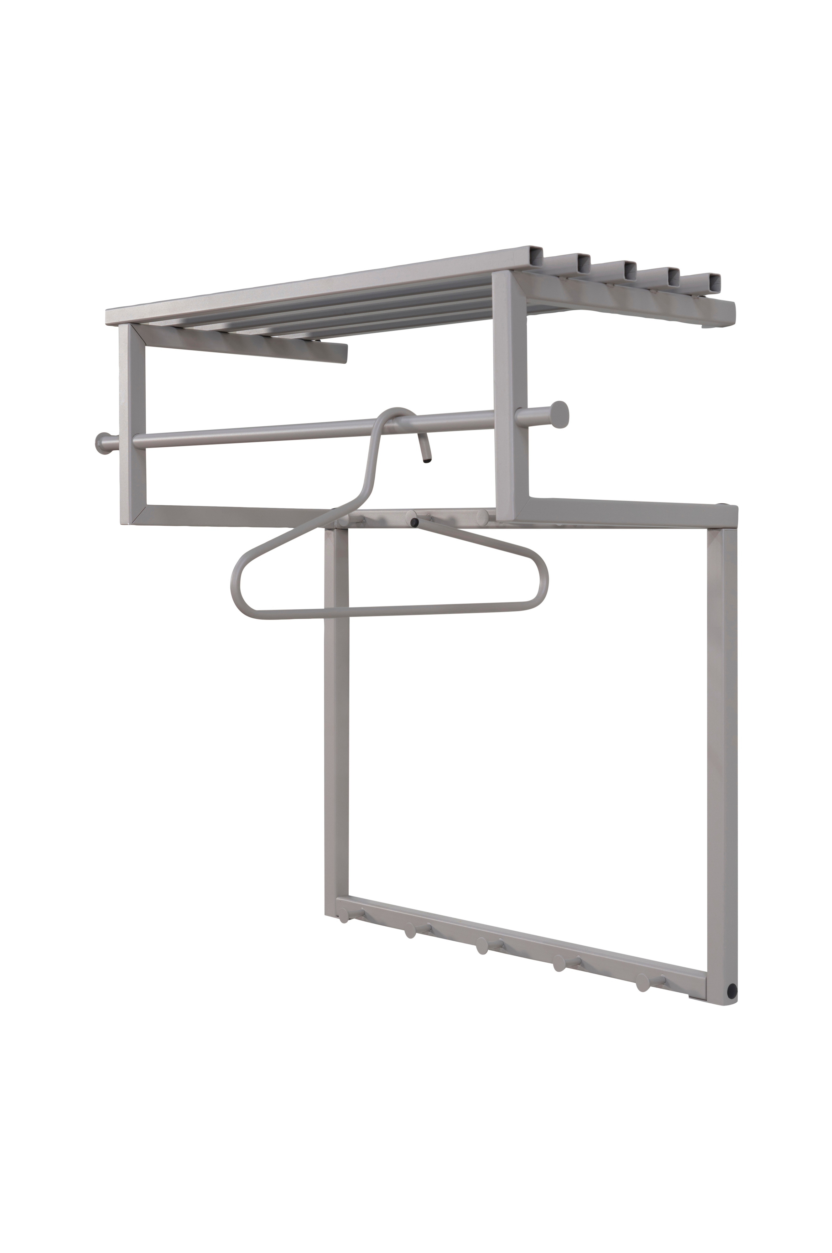 Rizzoli klesstativ skaper umiddelbart en varm velkomst til hjemmet ditt. Denne knaggrekken i stål med massiv eik er en robust knaggrekke som vet å finne en plass i nesten alle hjem. rizzoli er ikke bare vakker å se på, den er også svært funksjonell. På hattehyllen er det plass til de fineste accessoirene dine, hatter og skjerf, på stangen kan du henge frakkene dine pent, og krokene er til de andre frakkene. Også fint: krokene nederst på klesstativet er tilgjengelige for barn. rizzoli er en vinner for hele familien!