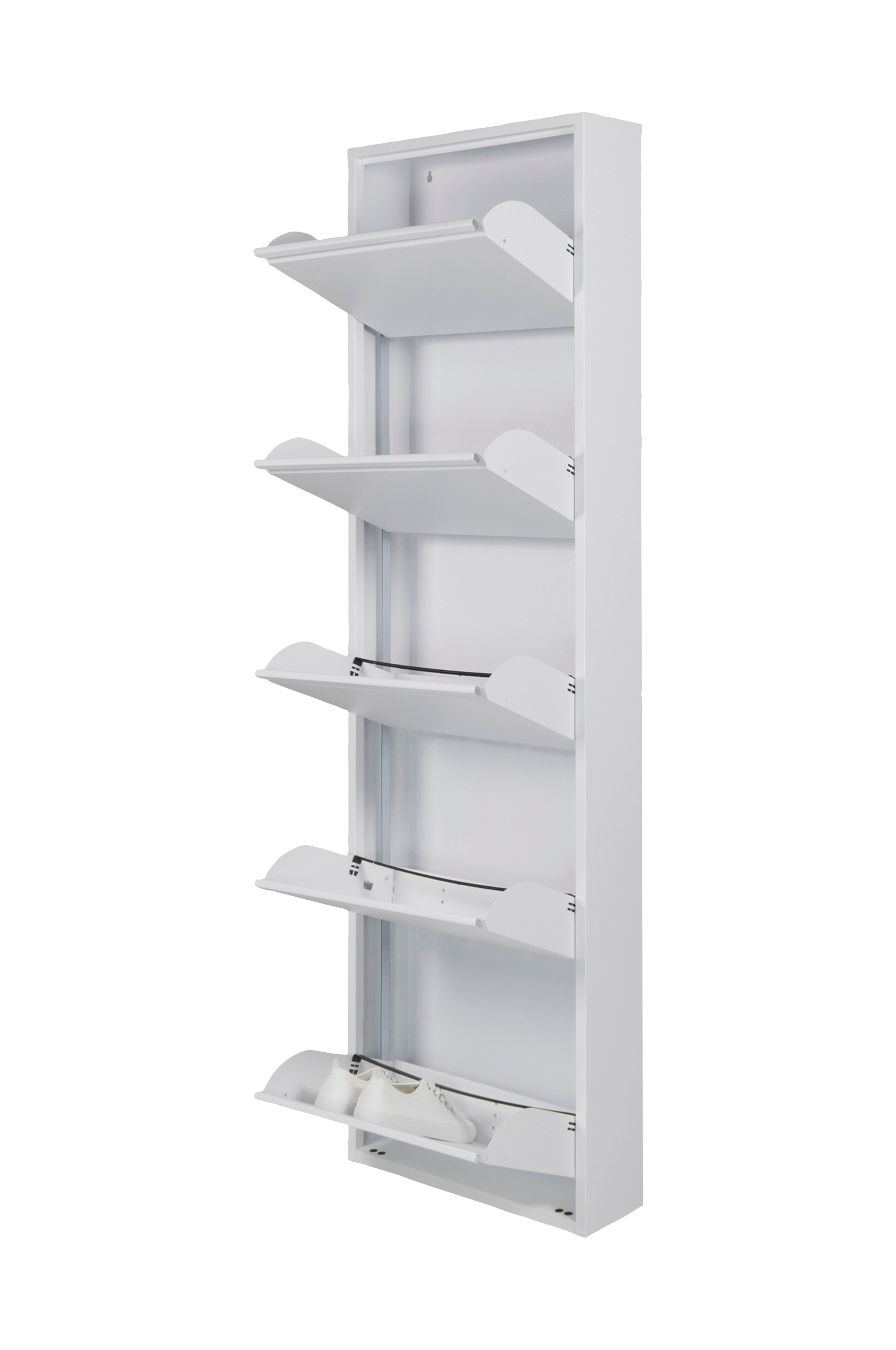 Billy 5 skoskap i pulverlakkert stål har en slank, grunn design og er et stilig svar på et vanlig problem: sko som ligger og slenger. Et multifunksjonelt skoskap som fås i flere størrelser, og som er et praktisk blikkfang både på gulvet og på veggen. Billy 5 har plass til ca. 10 par sko og er tilgjengelig i flere farger.