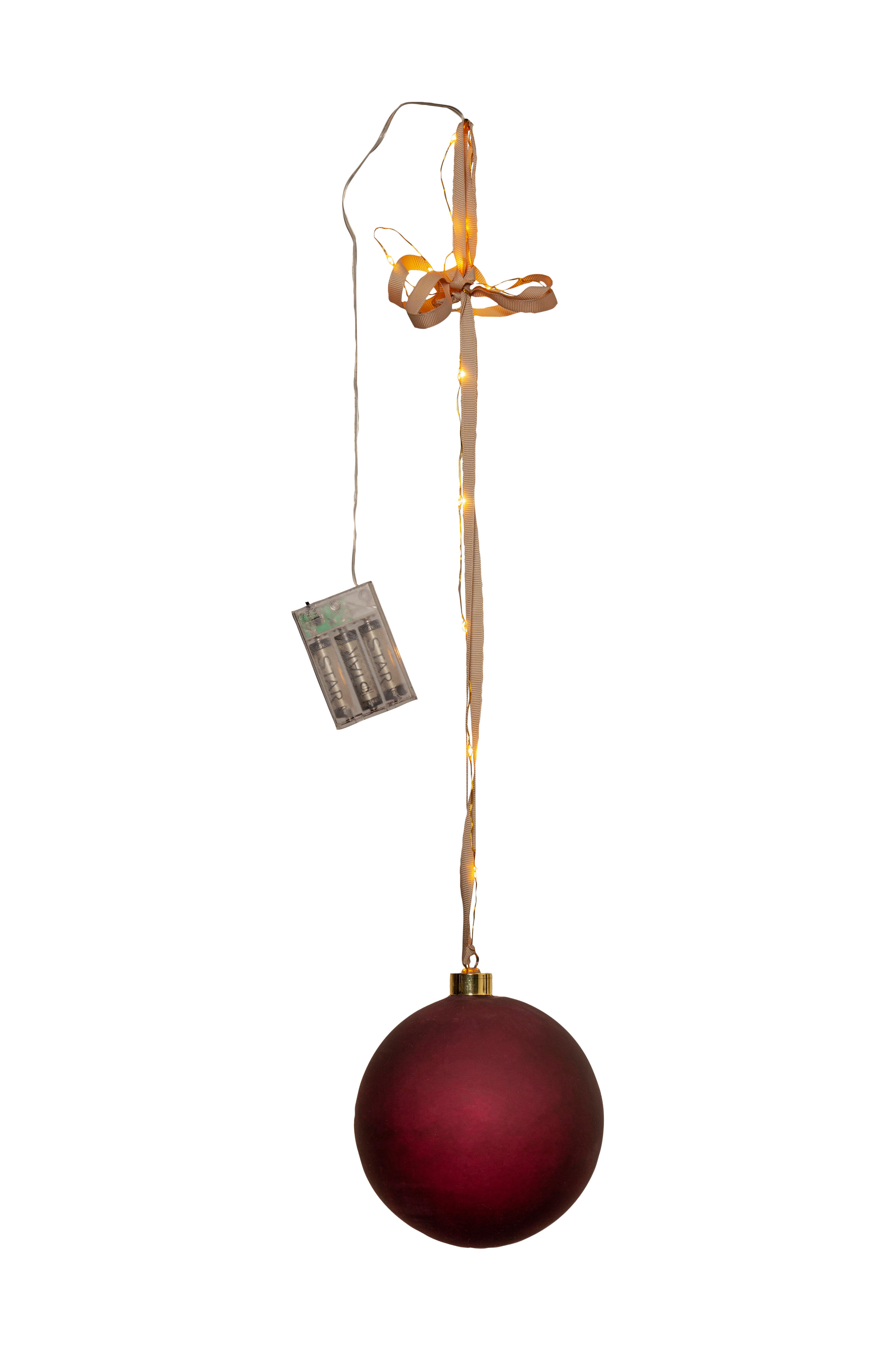Dekorativ julekule i glass, dew drops langs dekorbåndet og i glasskulen; 13 LED langs dekorbåndet og 5 LED i kulen. Pynten gir et vakkert stemningsfullt lys. Batteridrevet. Den innebygde timeren gjør det lett å stille inn når produktet skal lyse. Dekorer med glasskulen til jul og advent, perfekt julepynt som gir en magisk stemning til vinduer og inne i rommet.