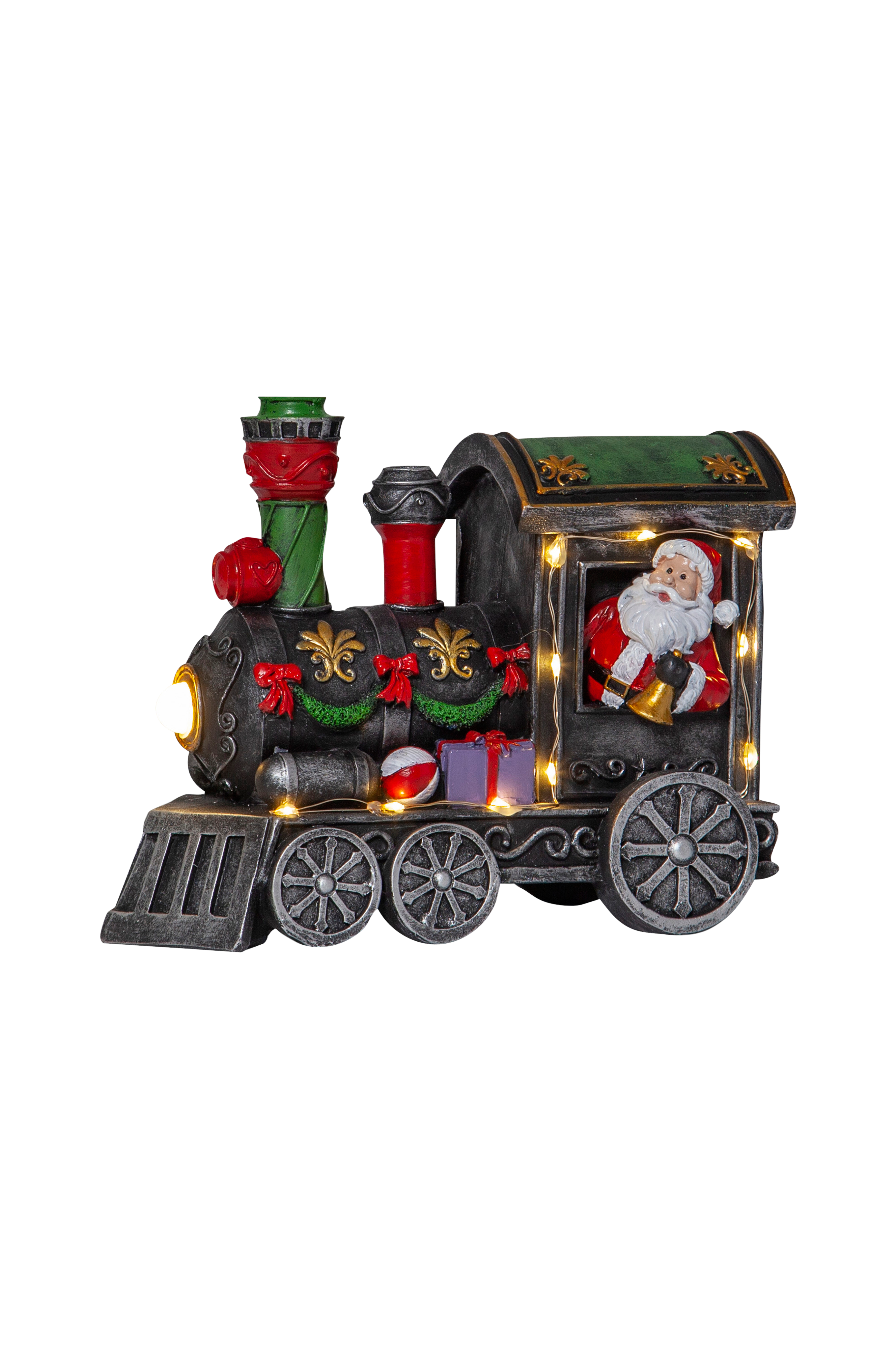 Dekorativt tog med julenisse. Små LED-dioder lyser opp toget, som også fine detaljer. Sett det på et bord eller en hylle, og få en herlig julefølelse.