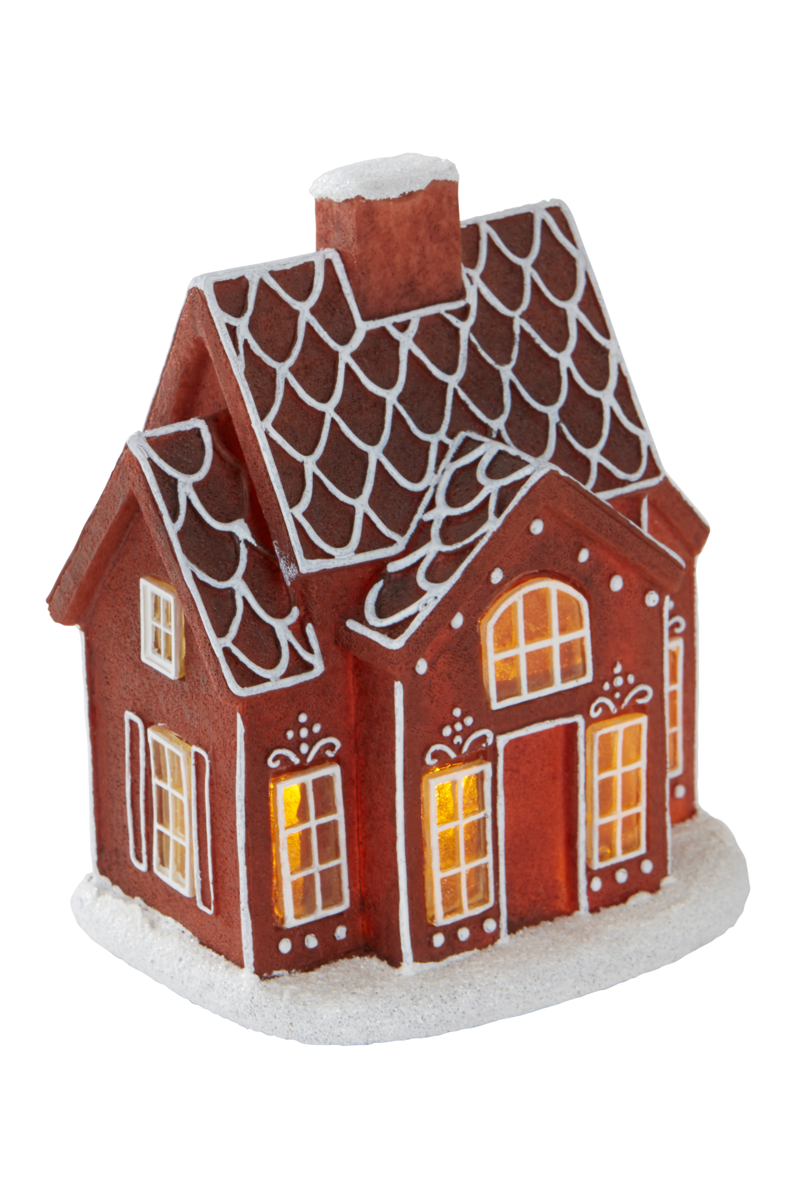 Julefint pepperkakehus som er batteridrevet og til innendørs bruk. Det lyser stemningsfullt med et varm lys inni huset, og sprer koselig stemning. Pepperkakehuset har timer som lar det lyse i 6 timer og deretter være slukket i 18 timer, repeterende. 2 stk. lyskilder. Lyspærer inkludert. Drives med 3 stk. AAA-batterier. Batterier medfølger ikke.