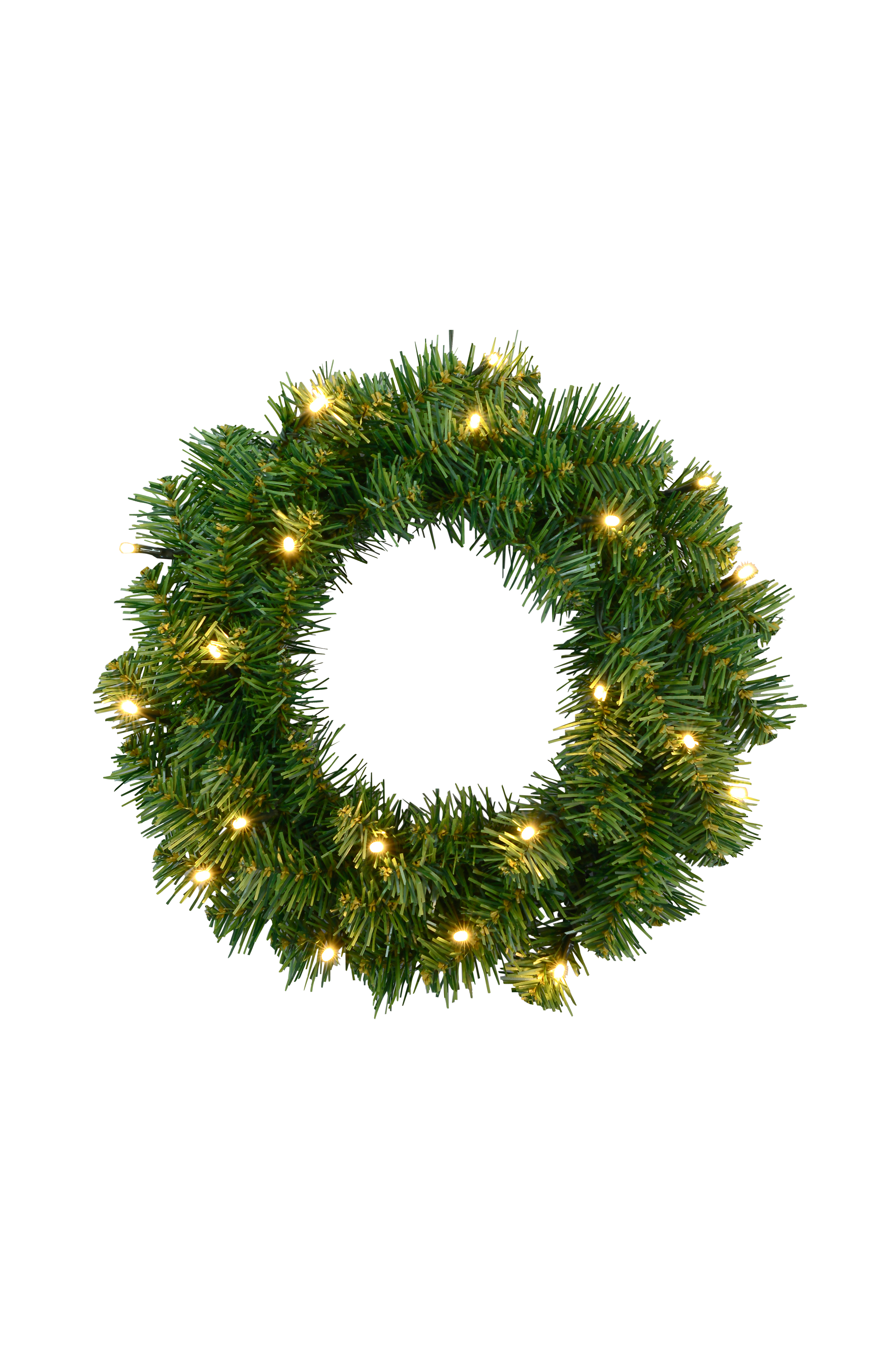 Vakker og vinterlig krans med sensorbelysning. For utendørsbruk. Kransen er 38x38 cm, og har 20 stk ikke utskiftbare LED-pærer. Pærene er batteridrevet med 3 AA-batterier (ikke inkludert). Brennetid ca. 120 timer.
