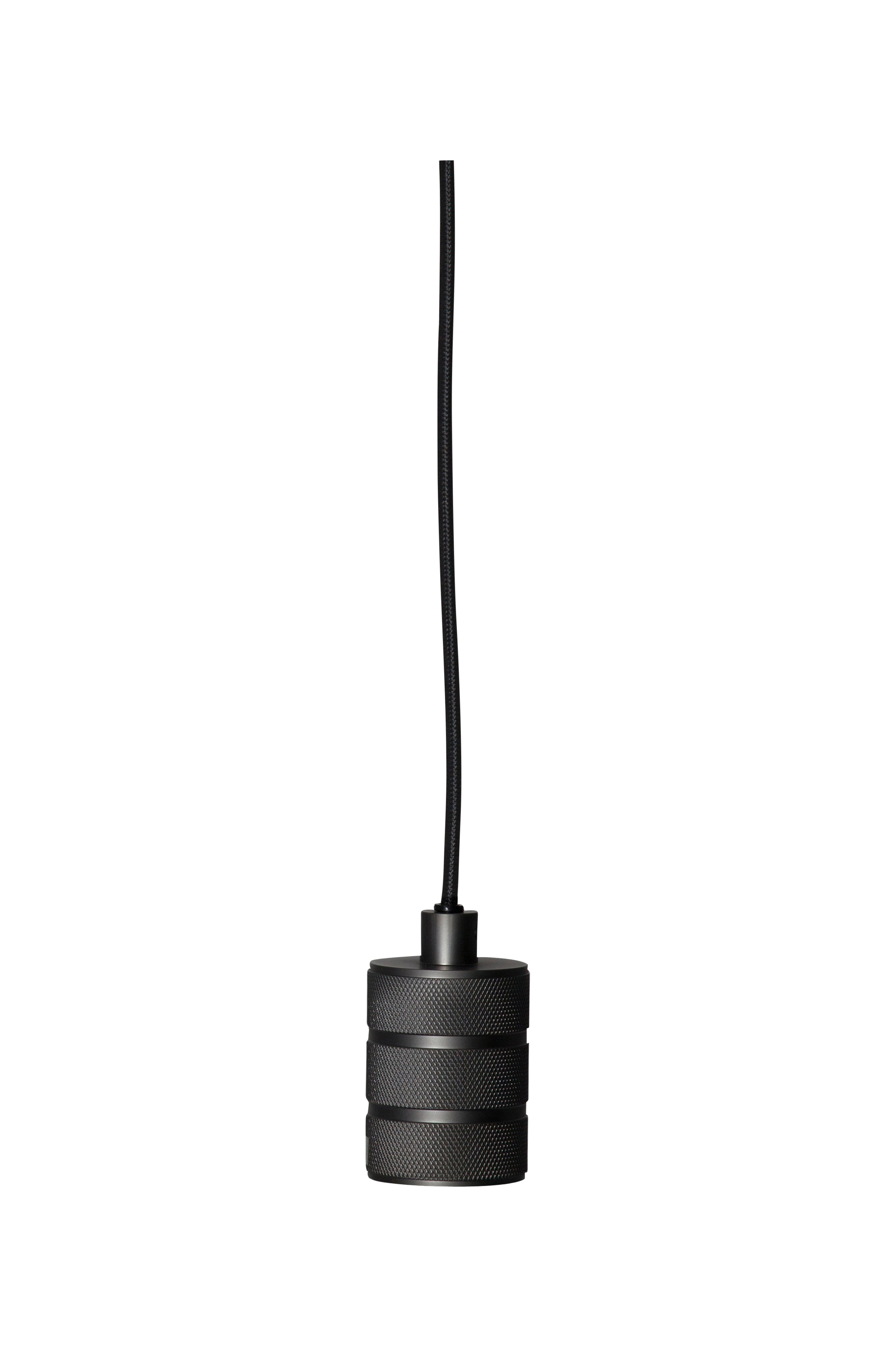 Dekorativt ledningssett med svart tekstilkledd ledning og E27-sokkel i sinkfarget metall. Et oppheng som gir fine innredningsmuligheter i huset.
