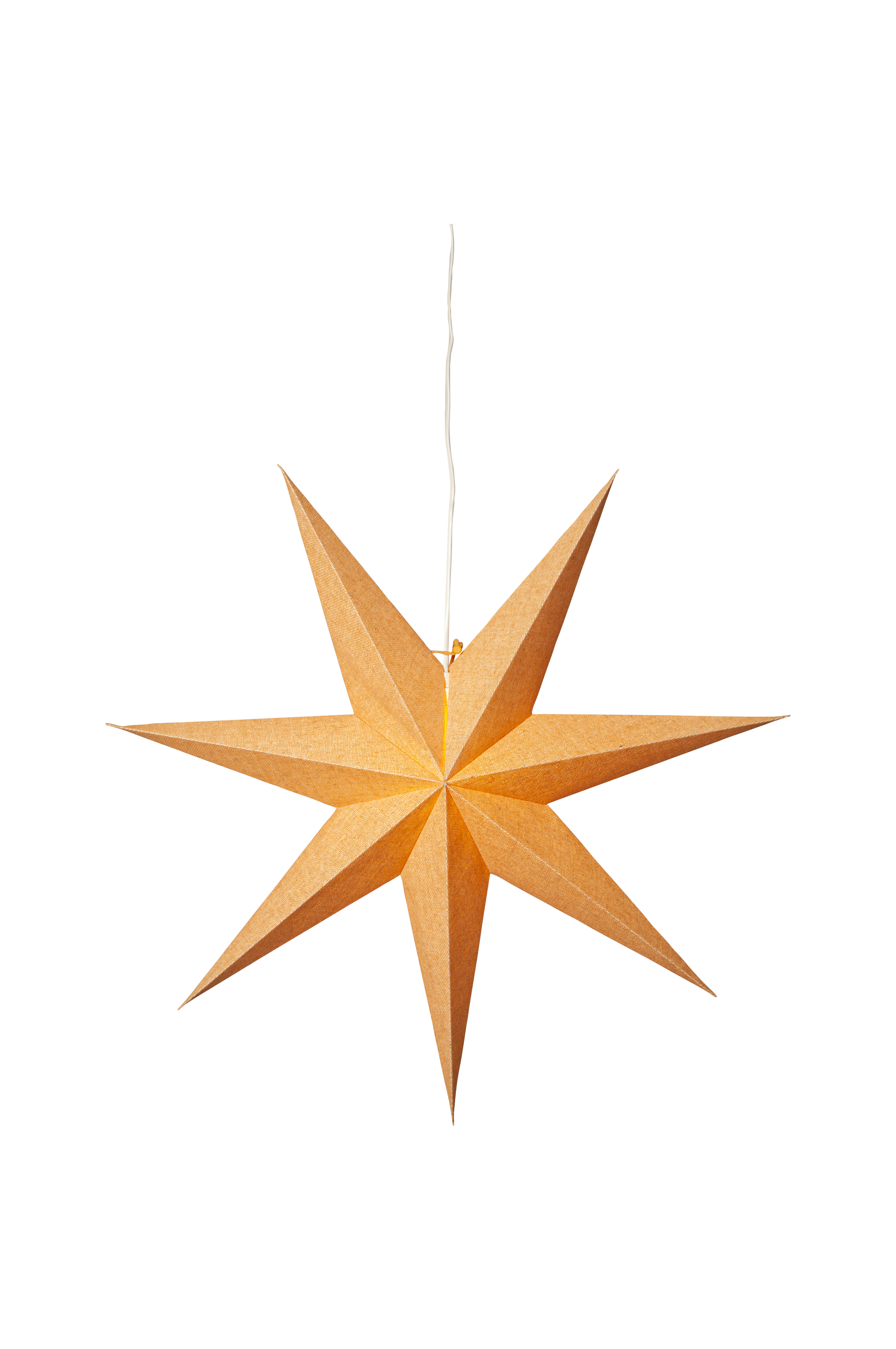 Papirstjerne kledd med stoff for den perfekte naturfølelsen. Moderne adventsstjerne til å pynte med i et vindu eller lenes mot en vegg. Dekorer til advent og få herlig julestemning. Kjøp også ledningssett og lyskilde for å få lys i stjernen.