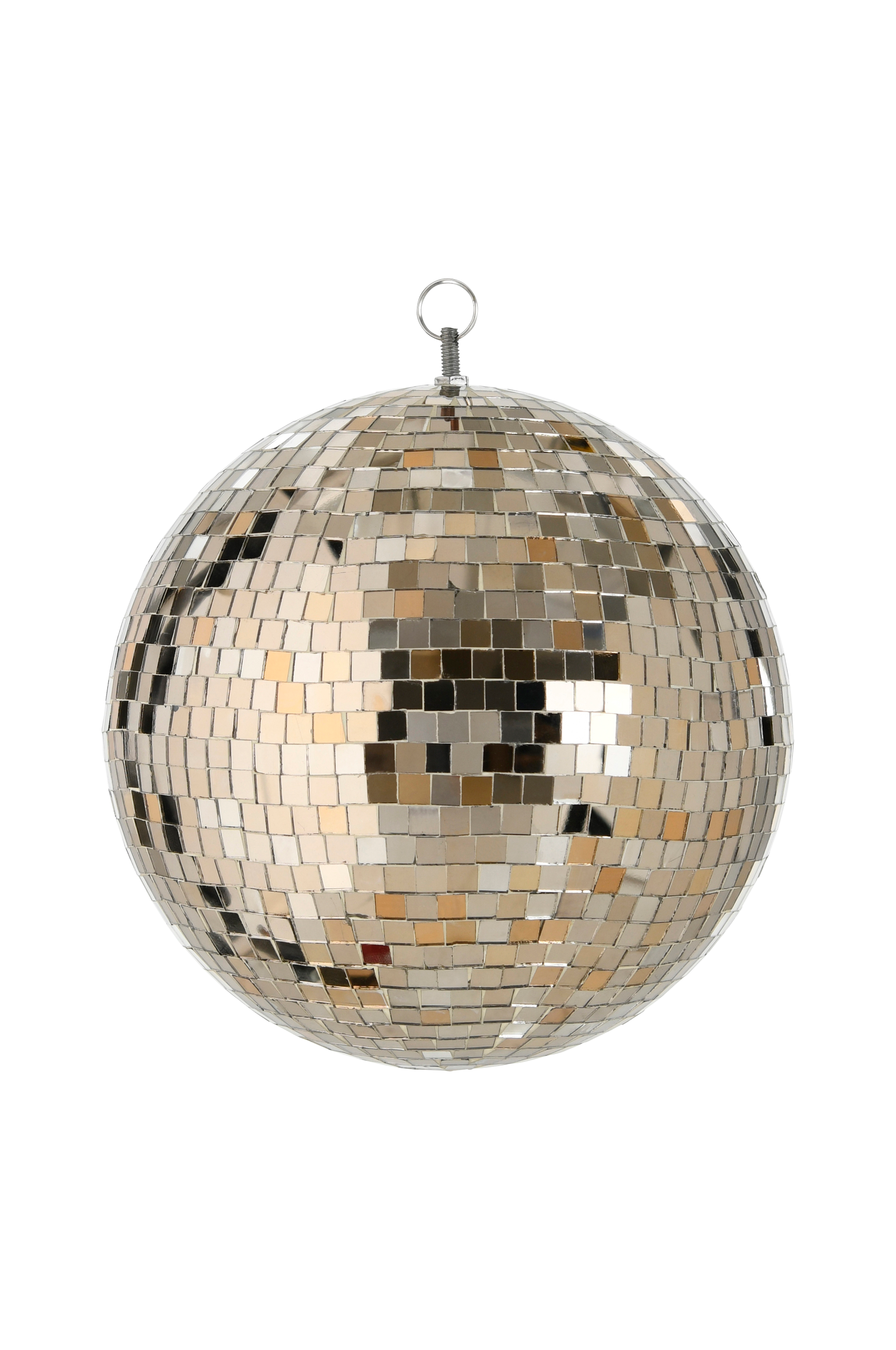 Klassisk discokule / speilball med små firkantede speil som reflekterer lyset. Feste for oppheng.