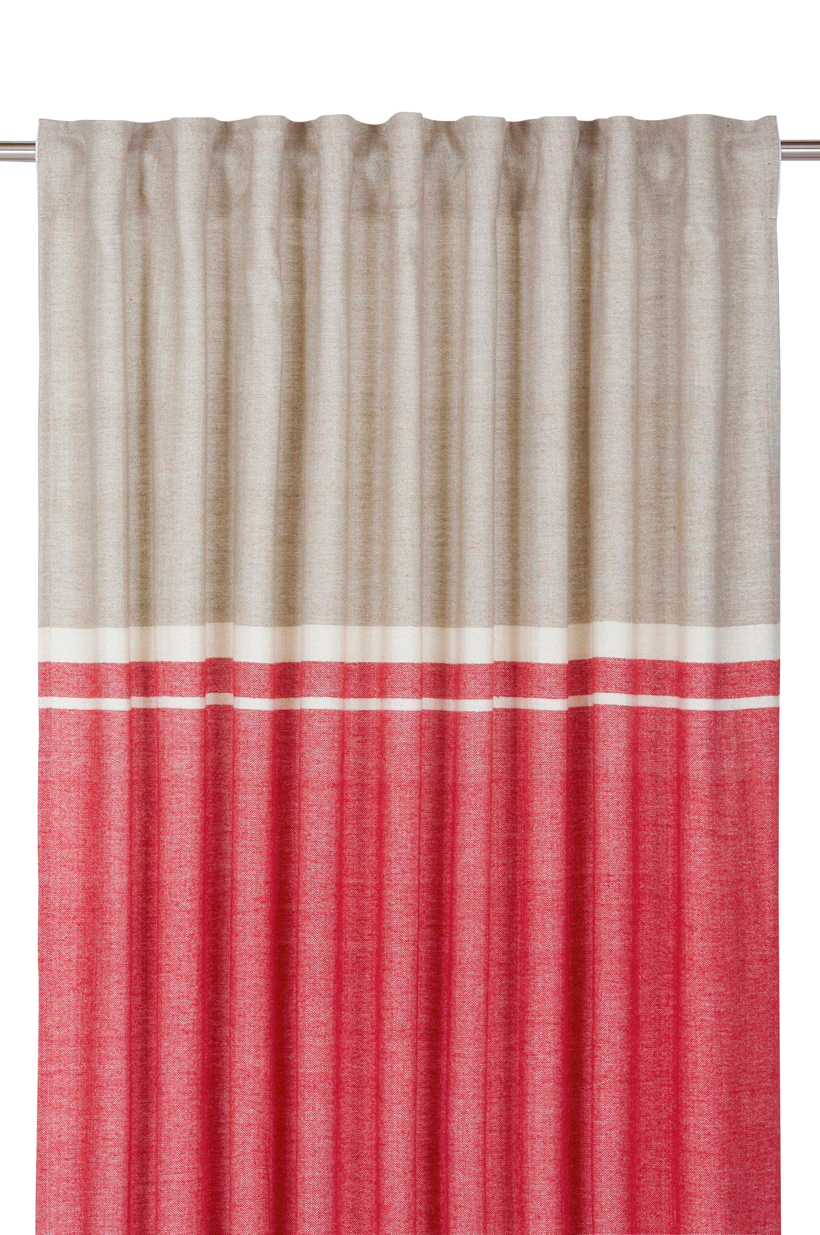 2-pk gardiner med multibånd, garnfargede striper i overkant og mykt børstet overflate. Gardinen har multibånd i overkant, faldede langsider og overlocksøm i nederkant. Bruk hurtigfaldebånd for å få riktig lengde på gardinen. Multibånd er en fleksibel løsning som gjør det mulig å henge opp gardinen med fingerkroker, hekter eller direkte på stang, avhengig av hvilken type folder og hvilket fall man vil ha på gardinen. Kan krympe 5%. 100% bomull. 2x140x260 cm.