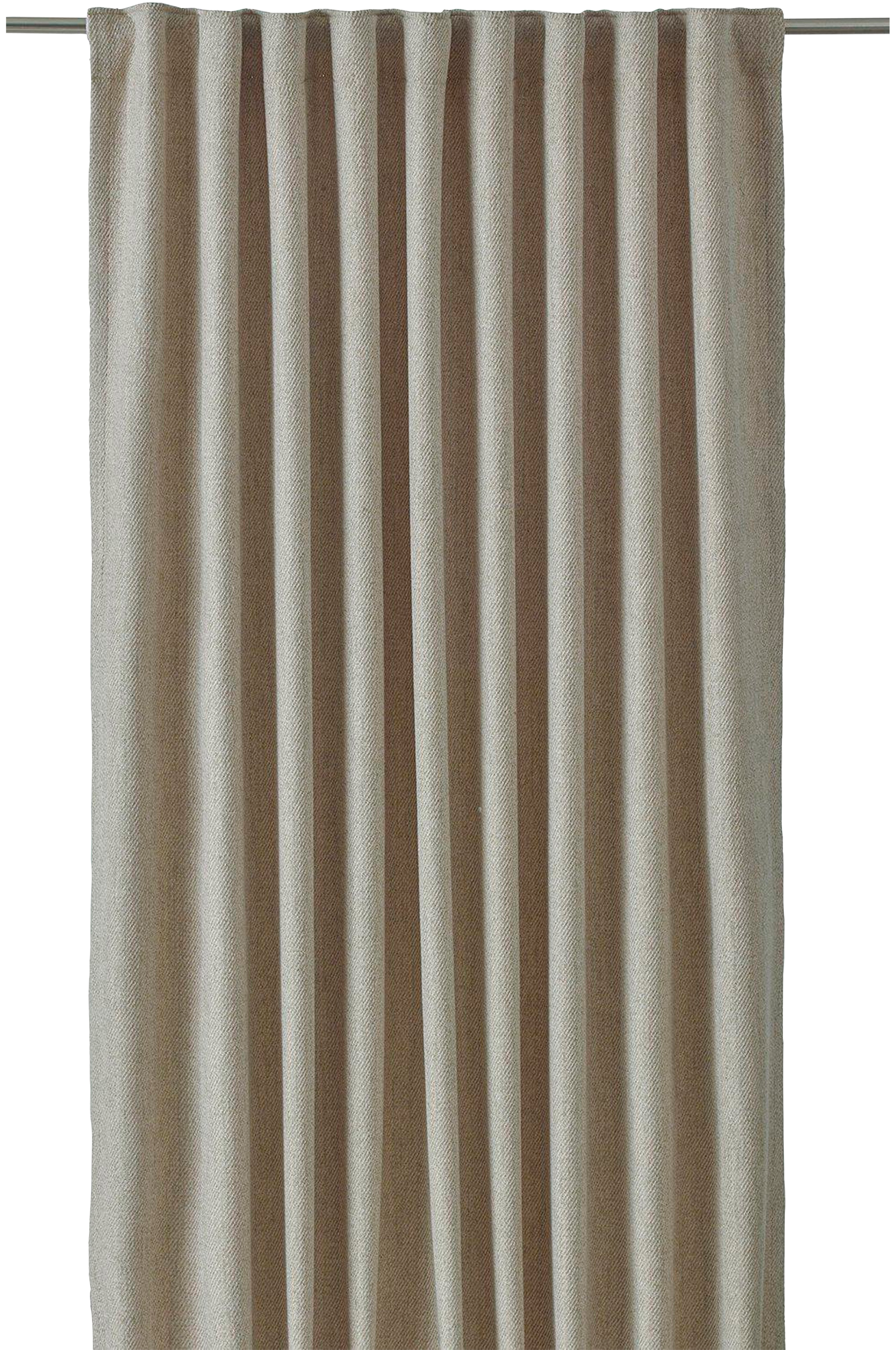 2-pk gardinlengder med en litt grov ullignende tekstur og diagonal veveeffekt. Gardinlengdene har multibånd i overkant, faldede langsider og overlocksøm i nederkant. Bruk hurtigfaldebånd for å få riktig lengde på gardinen. Kan krympe maks 1%. Multibånd er en fleksibel løsning som gjør det mulig å henge opp gardinen med fingerkroker, hekter eller direkte på stang, avhengig av hvilken type folder og hvilket fall man vil ha på gardinen. 100% polyester.
